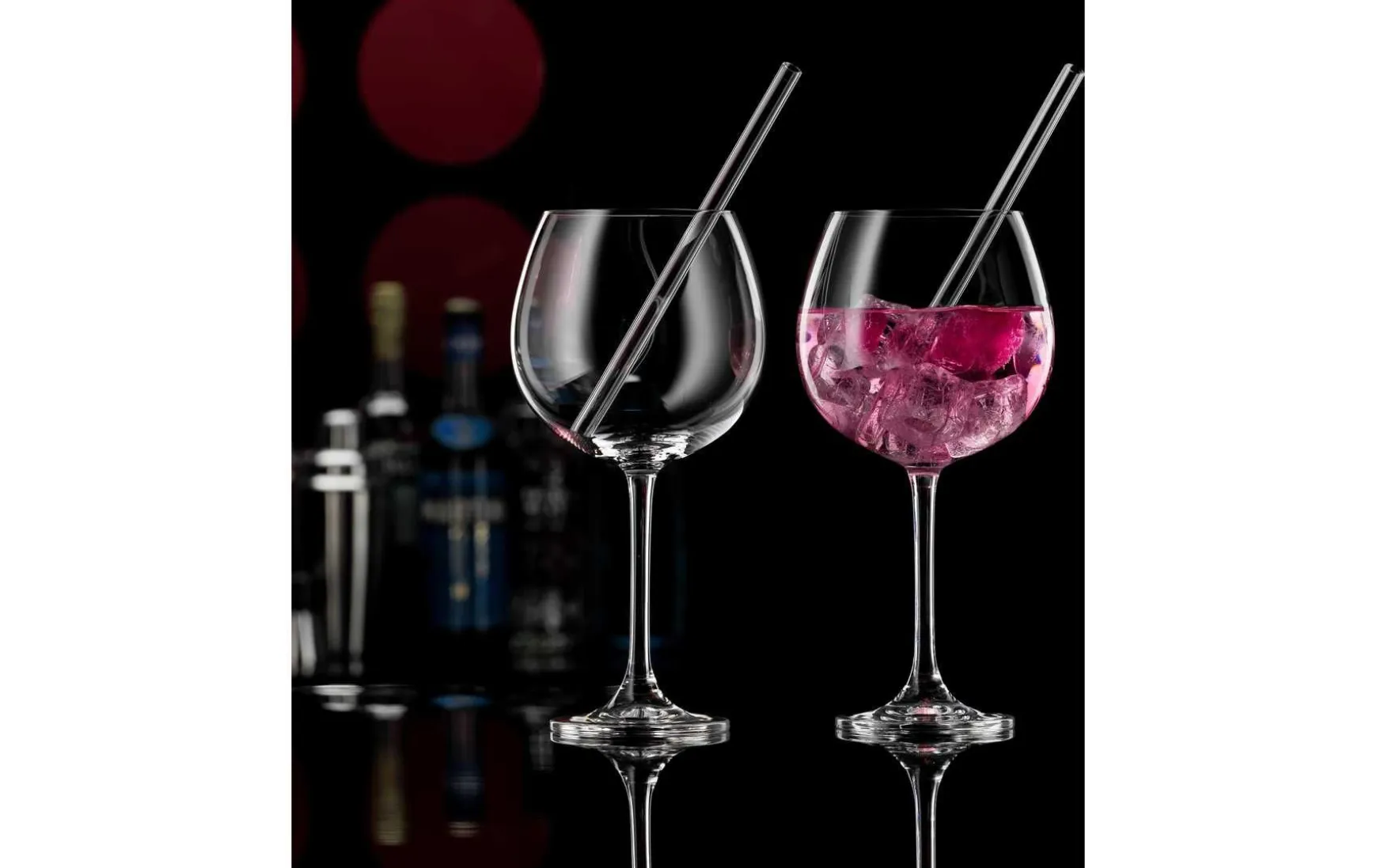 Cristal Ginglas-Set bestehend aus zwei Gingläsern und zwei Trinkhalmen aus transparentem Kristallglas.