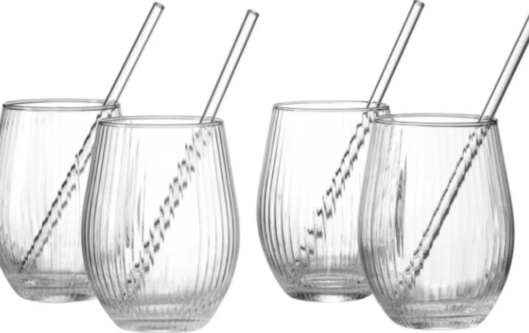 Das elegante Gläserset 8-tlg. kommt inklusive vier Glastrinkhalmen (20 cm).