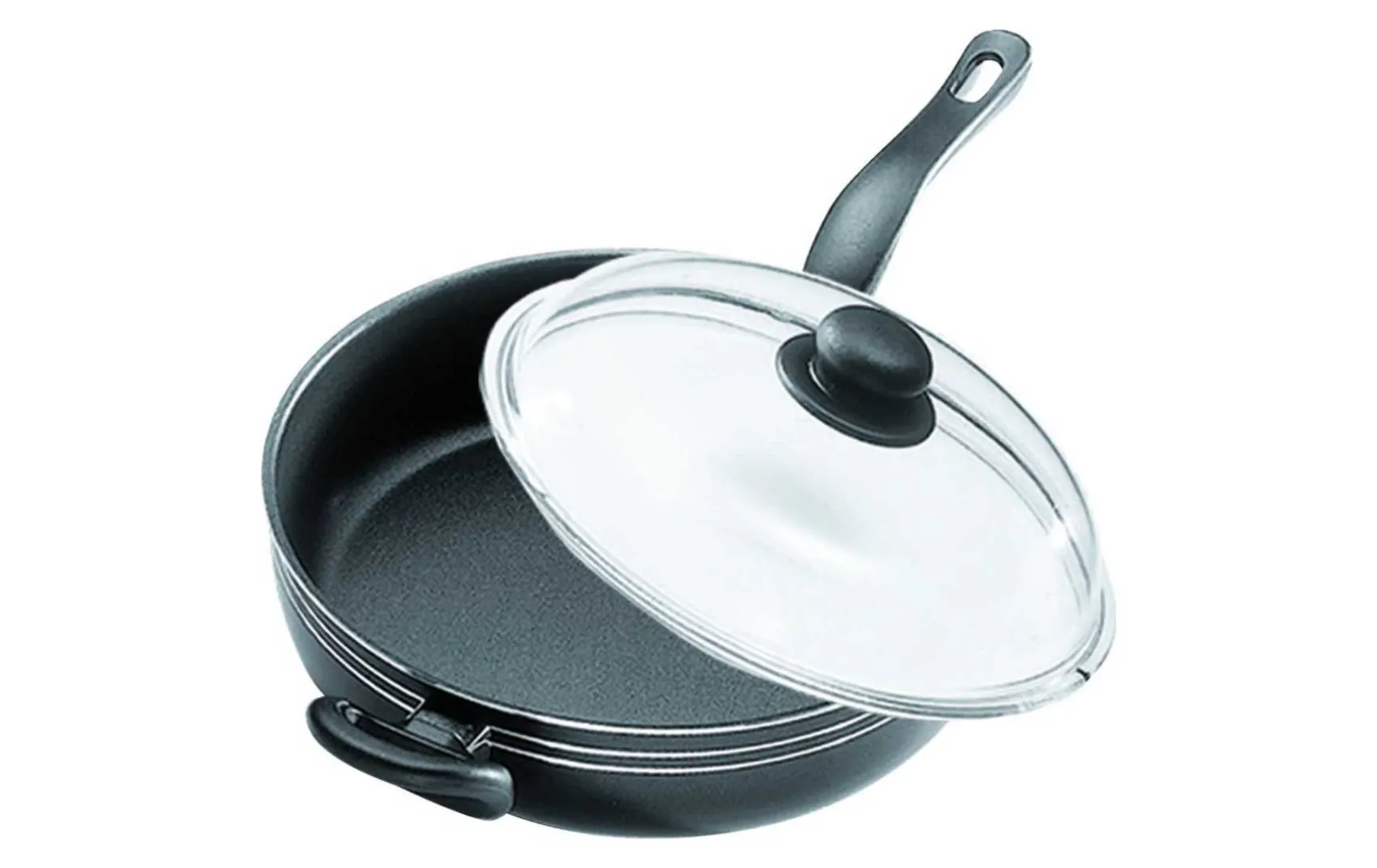 Die Großraumpfanne mit ca. 28 Zentimetern Durchmesser darf in keinem Familienhaushalt fehlen. Ein Glasdeckel mit Dampfablass ist inkludiert. Die Pfanne besteht aus Aluminium und ist mit einer PFOA-freien Antihaftbeschichtung ausgestattet. Der praktische Gegengriff erleichtert das Handling.