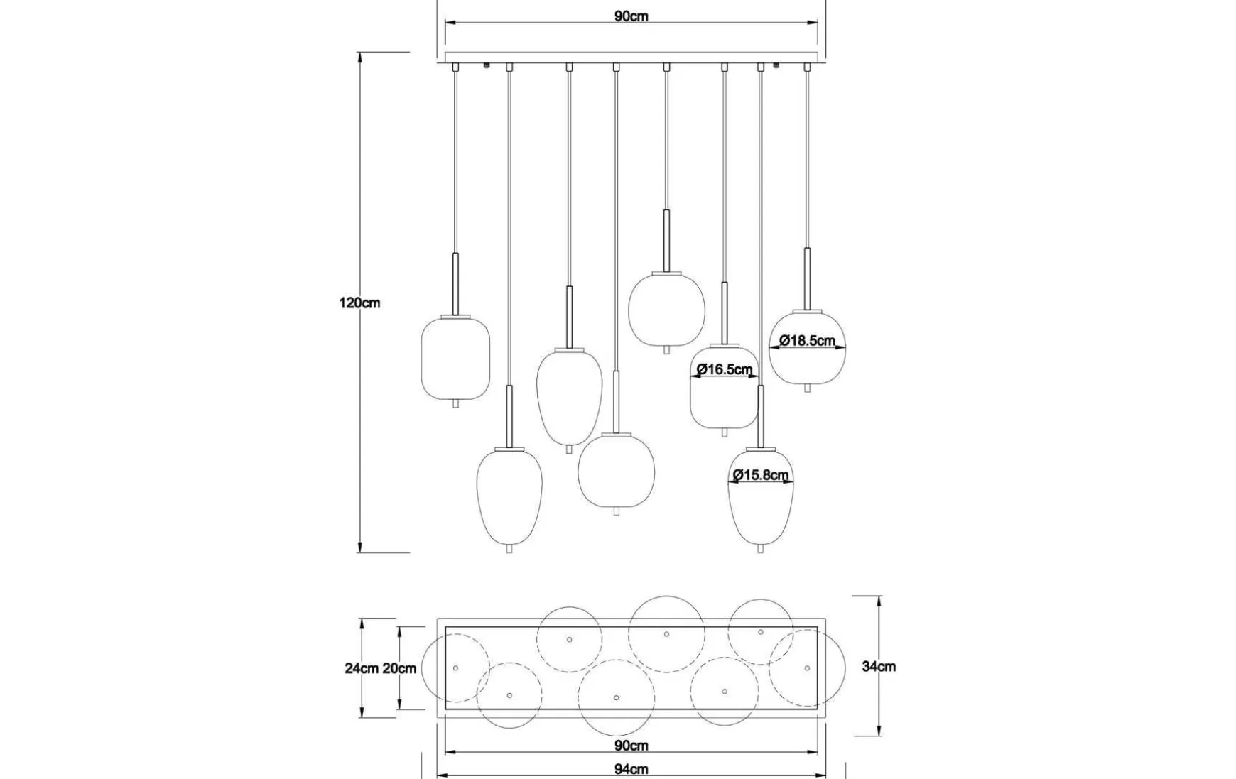 - Anzahl Leuchtmittel: 8 Stück (nicht enthalten)