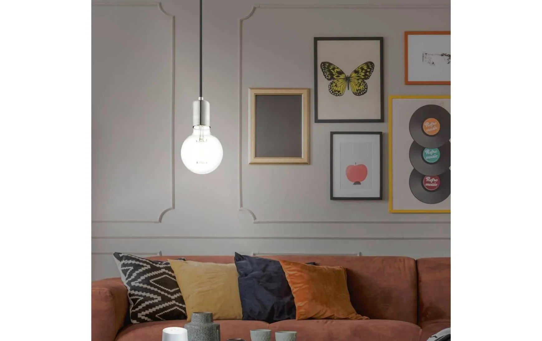 Die Pendelleuchte ist aus Metall in Nickel-Matt und einer gleichfarbigen Lampenfassung gefertigt. Das schwarze Textilkabel rundet den minimalistischen Stil der Hängelampe hervorragend ab. Dank unterschiedlich kombinierbarer Leuchtmittel, fügt sich das Schnurpendel nahtlos in jeden Trend wie z.B. Vintage, Industrial und Modern ein. Die Hängeleuchte eignet sich für jeden Wohnraum – egal ob in der Küche über dem Tresen, im Wohnzimmer, Esszimmer oder Schlafzimmer über der Nachtkonsole. Das abgebildete Filament-Leuchtmittel ist nicht im Lieferumfang enthalten. Geeignet ist die Leuchte für jedes Leuchtmittel mit E27-Sockel.