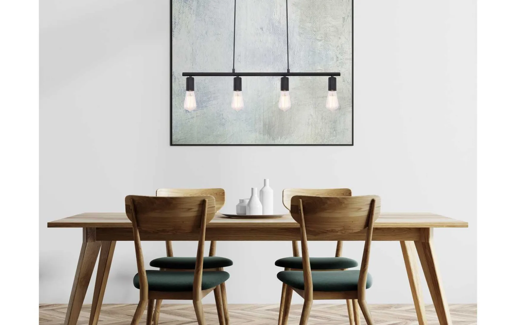 Wunderbarer Blickfang erhellt Ihren Wohnbereich – Die vierflammige Hängeleuchte, mit einer Länge von 80cm, lässt sich hervorragend in Ihr zu Hause integrieren.