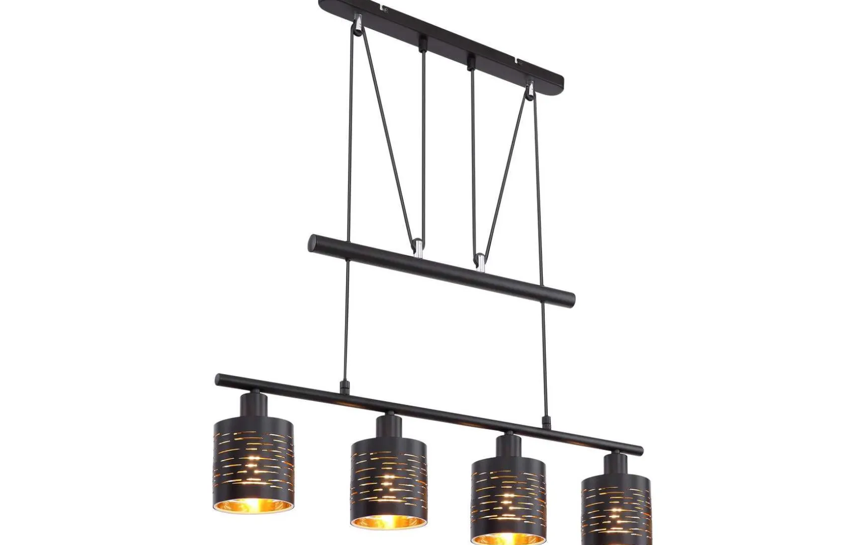 Mit dieser vierflammigen, äußerst modernen Hängeleuchte, werden leuchtende Akzente gesetzt.