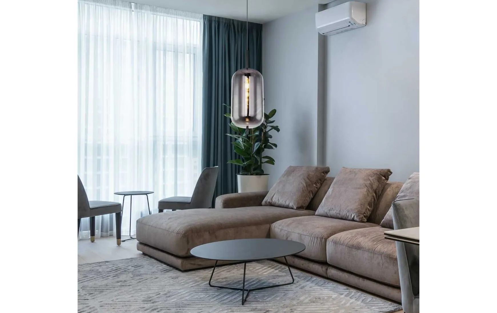 Diese Hängeleuchte (Ø 22 cm) besteht aus schwarzem Metall mit einem rauchfärbigen Glas. Das hängende Glas ist in seiner Aufmachung individuell. Diese 120cm in den Raum ragende, kunstvolle Lampe verfügt über eine E27 Fassung (max. 60 Watt), die eine freie Leuchtmittelwahl ermöglicht. Aufgrund ihrer Langlebigkeit und Stromersparnis empfehlen wir LED Leuchtmittel. Diese Pendelleuchte eignet sich hervorragend für Ihren Wohn- und Essbereich.