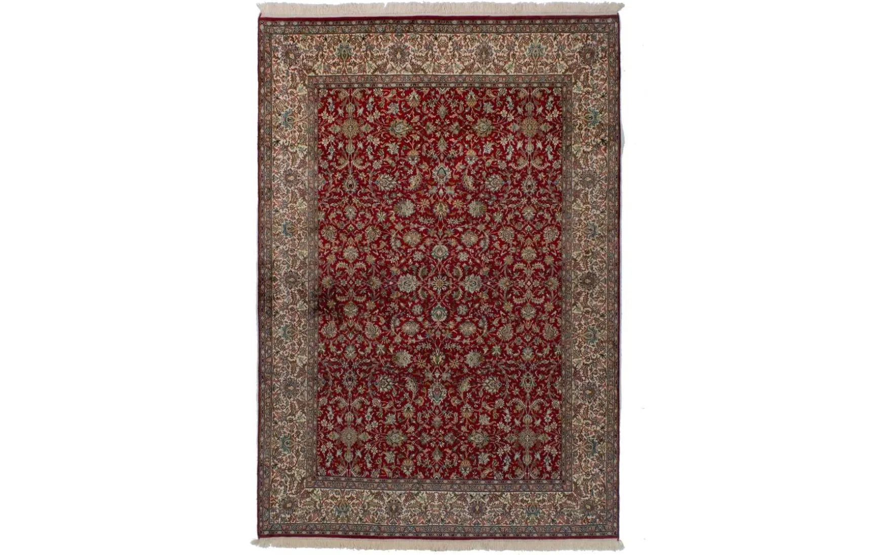Ein echtes Schmuckstück ist dieser handgeknüpfte Seidenteppich aus Kashmir. Mit extradichtem und feinem Flor aus 100% Naturseide.