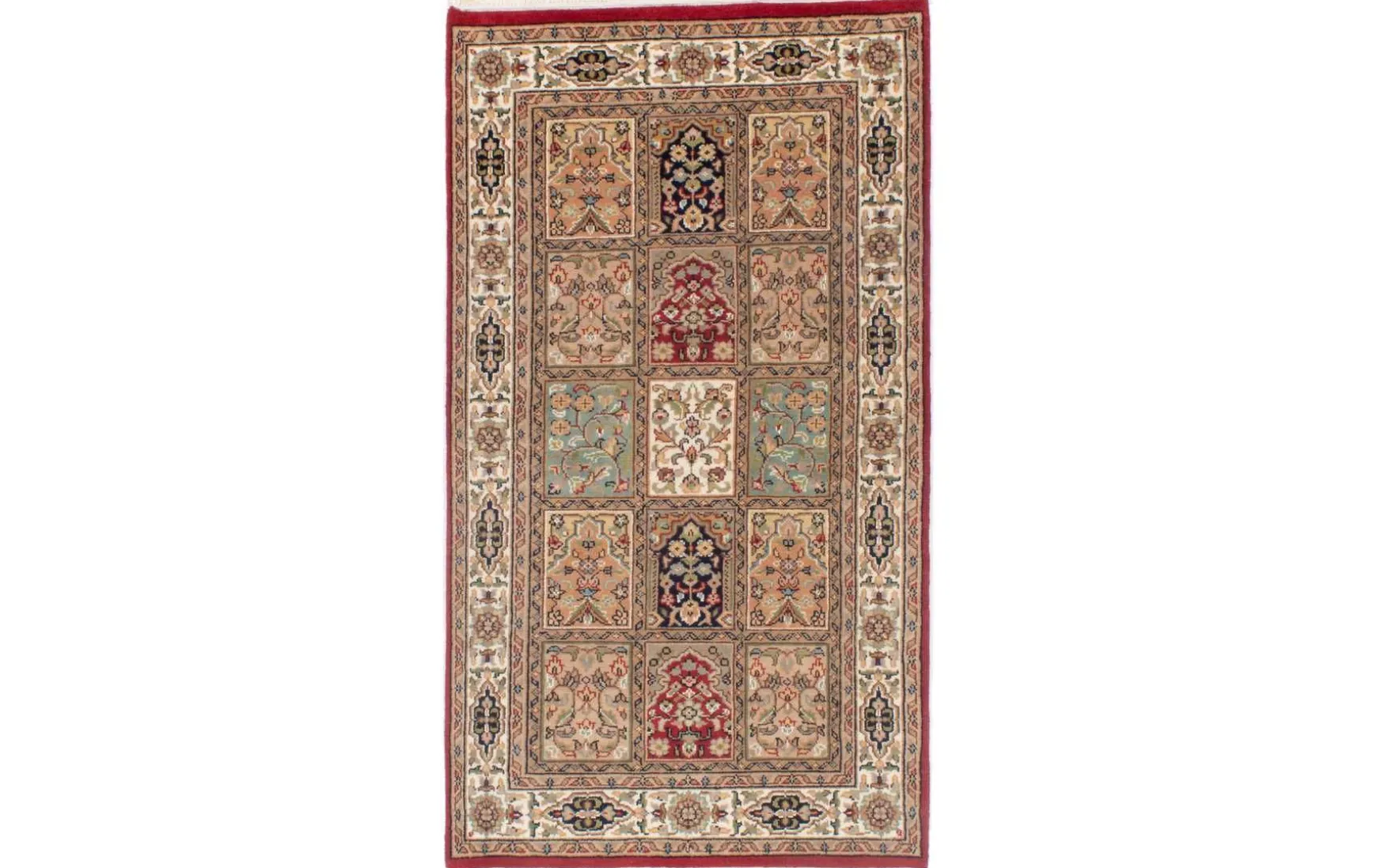 Traditioneller Handknüpfer aus Indien mit ausdruckstarkem Gartenbakhtiar – Design. Ein Blickfang für jeden Wohnraum.