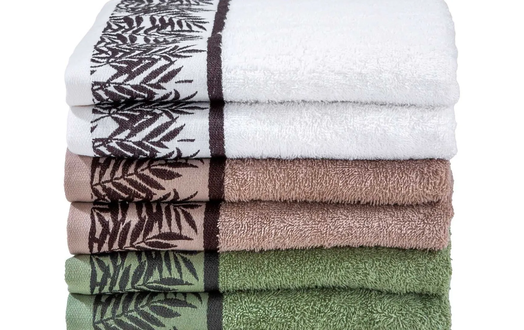 Dieses Handtuch aus 100 % Baumwolle überzeugt durch seine angenehme Weichheit und hohe Saugfähigkeit. Die dekorative Blattbordüre verleiht dem Handtuch eine natürliche, elegante Optik und macht es zu einem stilvollen Accessoire im Badezimmer. Die Farben sind sortiert in Weiß, Grün und Grau und lassen sich harmonisch mit verschiedenen Badstilen kombinieren. Dank der hautfreundlichen Baumwollqualität ist das Handtuch ideal für den täglichen Gebrauch geeignet.