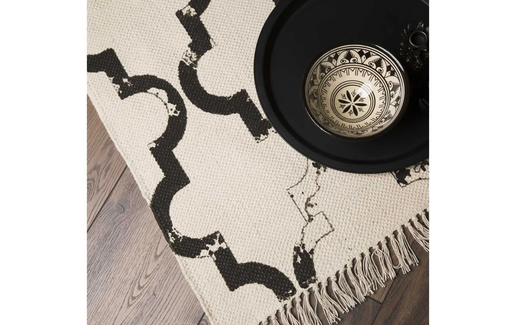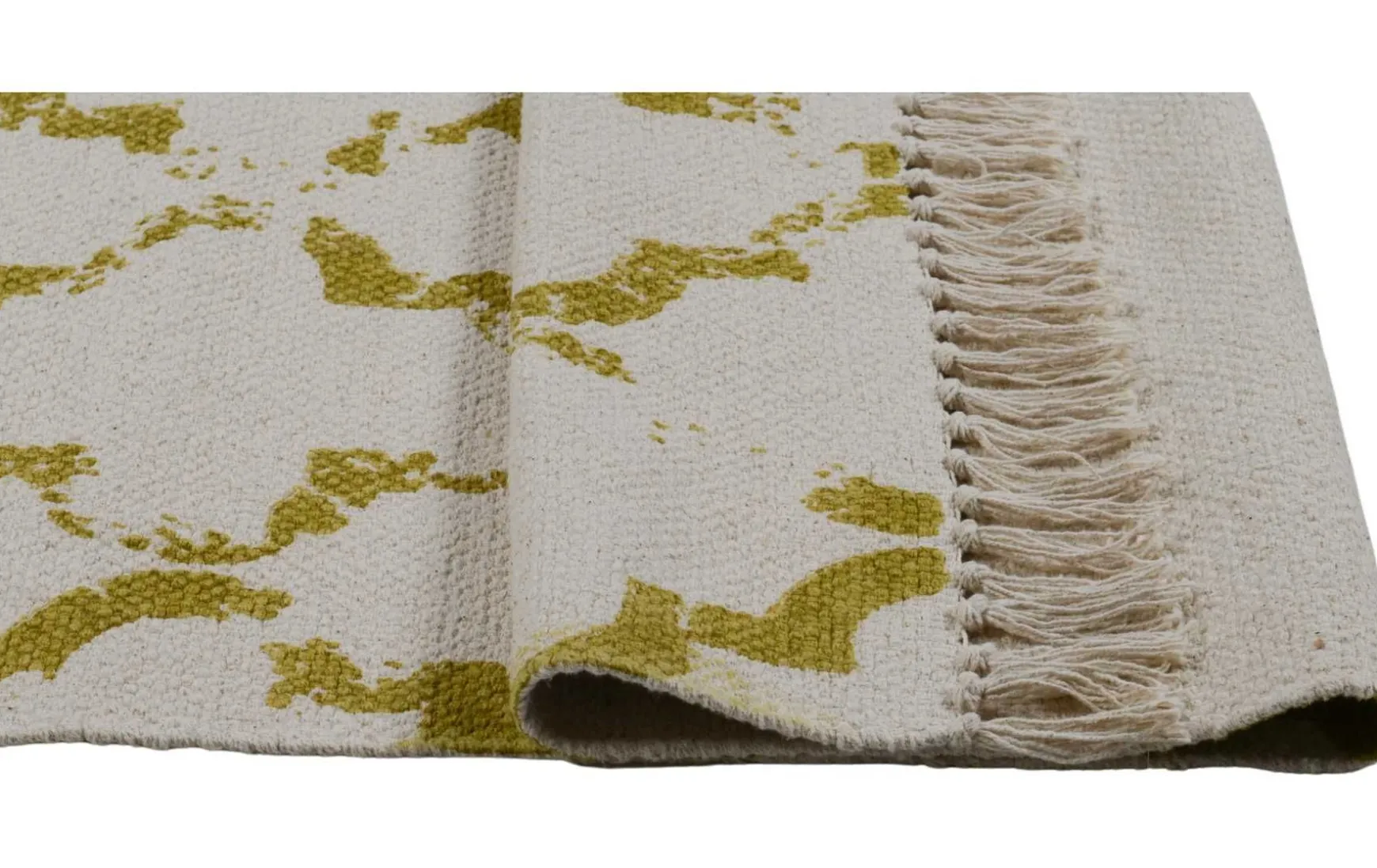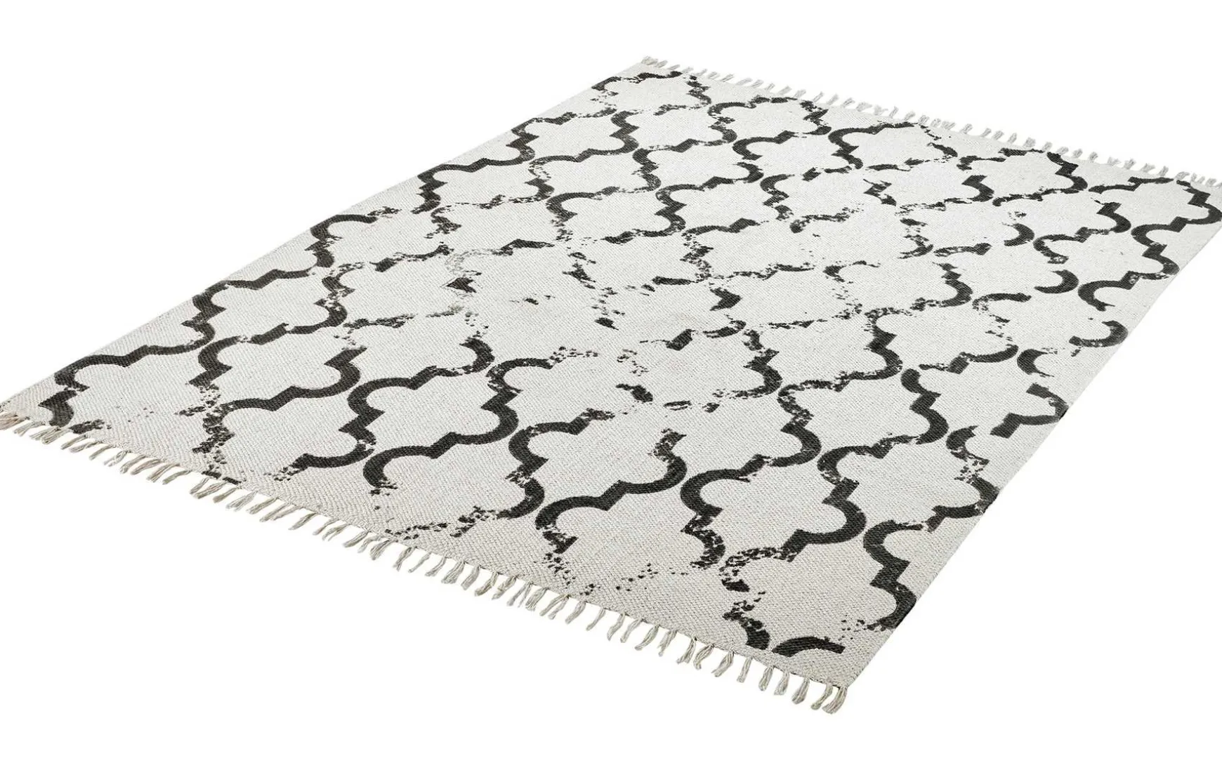 Dieser exklusive handgewebte Teppich in Weiß-Grau besticht durch seine 100%ige Baumwollzusammensetzung und das einzigartige Flachgewebe. Das Muster verleiht ihm eine charmante Vintage-Optik, die jedem Raum eine zeitlose Eleganz verleiht. Die hochwertige Verarbeitung garantiert nicht nur eine angenehme Haptik, sondern auch eine lange Lebensdauer. Dieser Teppich ist nicht nur ein Blickfang, sondern auch ein Stück zeitloser Schönheit für Ihr Zuhause.