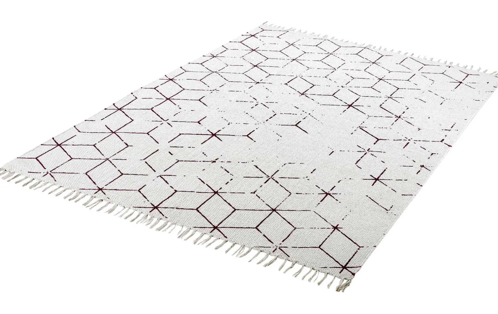 Dieser weiß-rote Handweb-Teppich präsentiert sich in einem faszinierenden Viereck-Muster, das jedem Raum Eleganz verleiht. Mit 100% Baumwolle gefertigt, zeichnet sich dieser Teppich durch sein hochwertiges, handgewebtes Flachgewebe aus und verleiht dank seiner Vintage-Optik eine zeitlose Note. Gönnen Sie sich den Luxus von Qualität und Stil mit diesem einzigartigen Teppich!