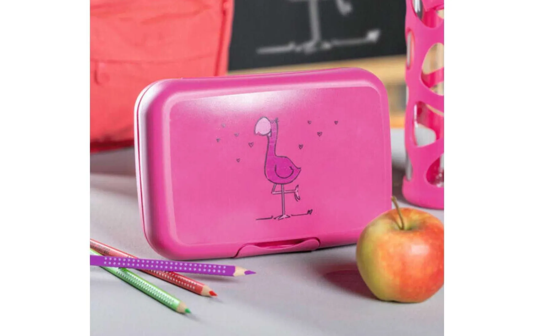 Unsere kleinen Abenteurer haben mit dieser Brotdosen ihre Stärkung immer parat, ganz egal wie klein oder groß der Bärenhunger gerade ist! Der handgezeichnete Flamingo, ist dabei ein treuer Wegbegleiter, der in der Tasche auf keinen Fall fehlen darf. Die Gesundheit der Kleinen liegt uns besonders am Herzen, deshalb verwenden wir BPA-freien Organic-Kunststoff mit Zellulosefasern. Für unsere Brotdose ist es kein Problem, wenn es mal wieder turbulent zugeht, denn der Clipverschluss kann sich nicht versehentlich in der Tasche öffnen. Unsere Brotdosen sind 100 % recyclefähig und natürlich Made in Germany. Lasse die neuen Pausenfreunde für deine Kleinen einziehen, so wird die Vorfreude auf die Frühstückspause noch größer.
