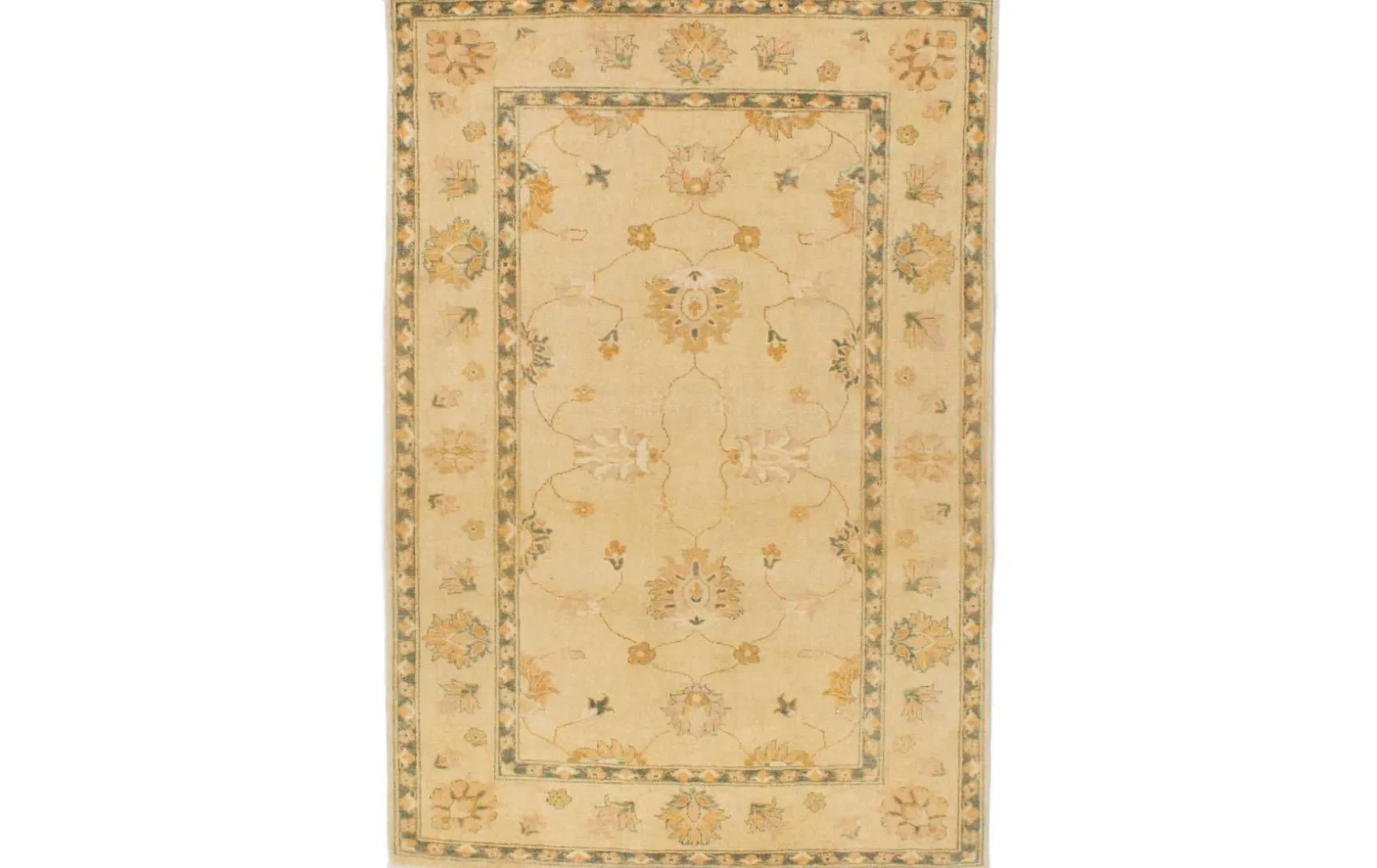 Dieser handgeknüpfte Teppich aus Pakistan begeisert im Antik-Look und hat einen sehr dichten Flor aus 100% Schurwolle.