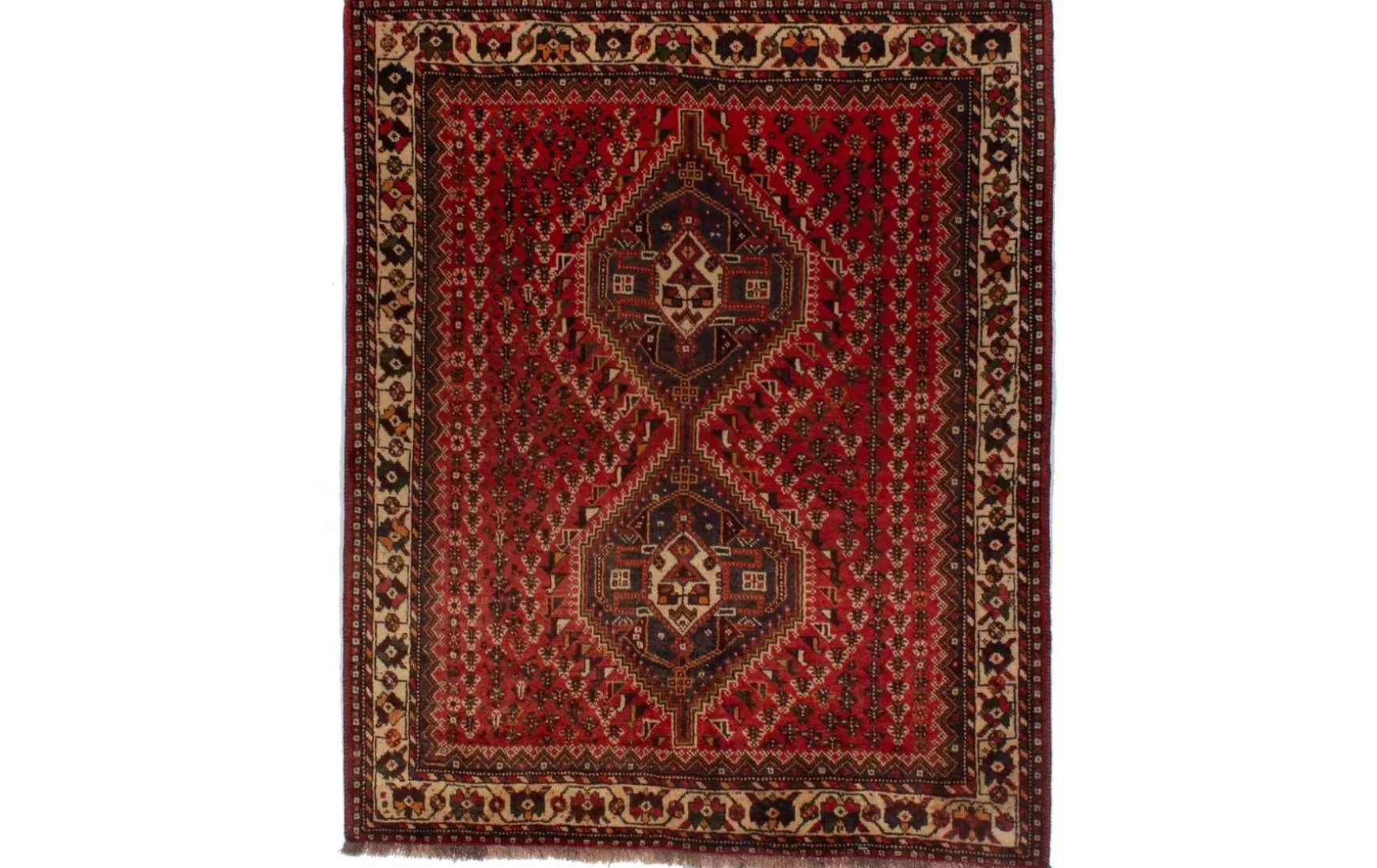 Handgeknüpfter Teppich aus dem persischen Nomadengebiet mit geometrischem Muster. Ein muss für jeden Orientliebhaber. Der Flor und die Kette wurden aus 100% Schurwolle verarbeitet.