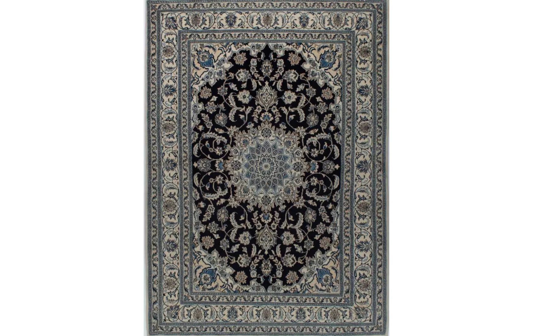 Hier zeigt sich ein handgeknüpfter Teppich aus dem Iran im eleganten Flor aus 100% Schurwolle.