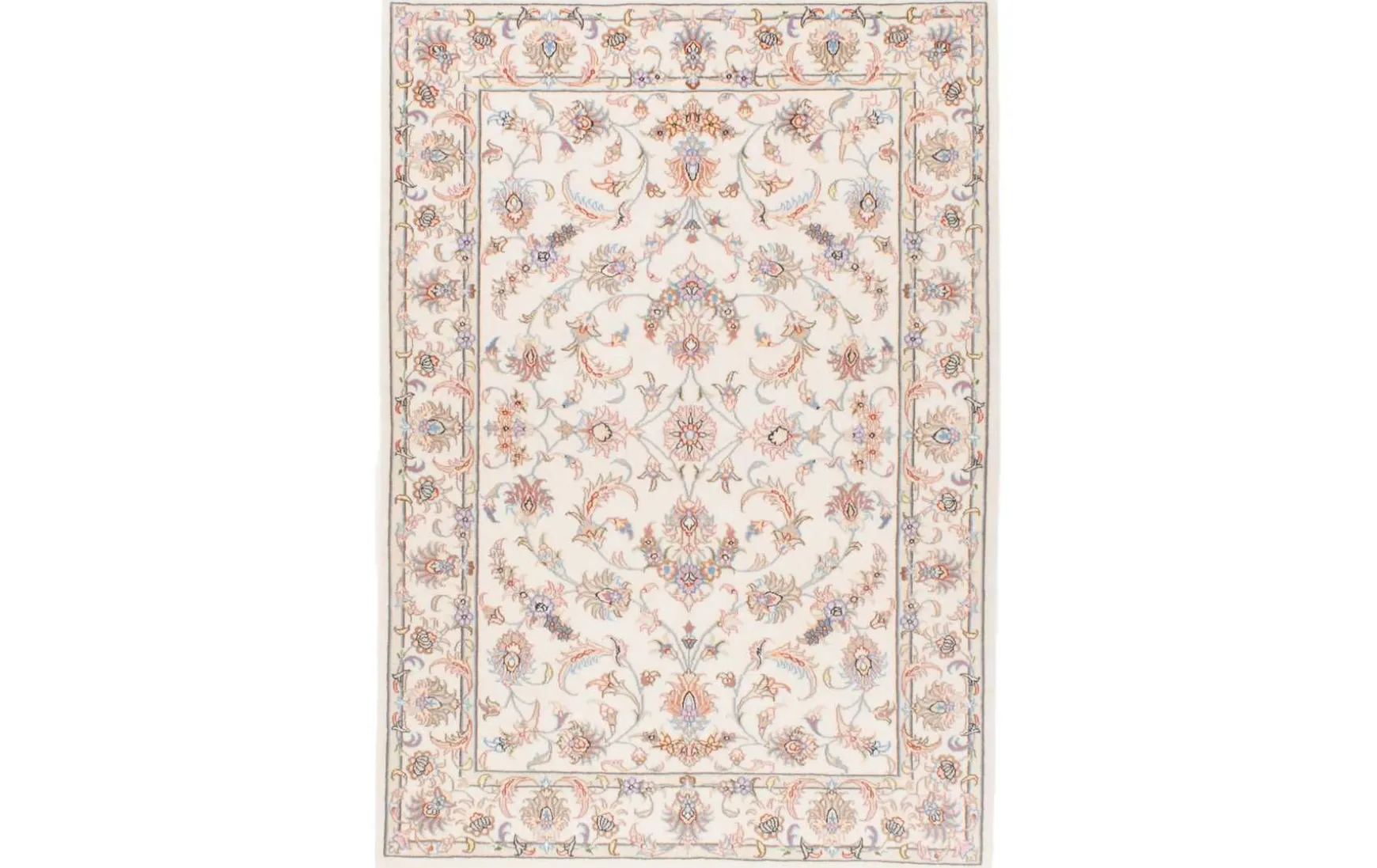 Passend für jeden Wohnraum ist dieser handgeknüpfte Teppich aus dem Iran im Floral-Design mit extra dichtem und feinem Flor aus 100% Hochlandwolle.