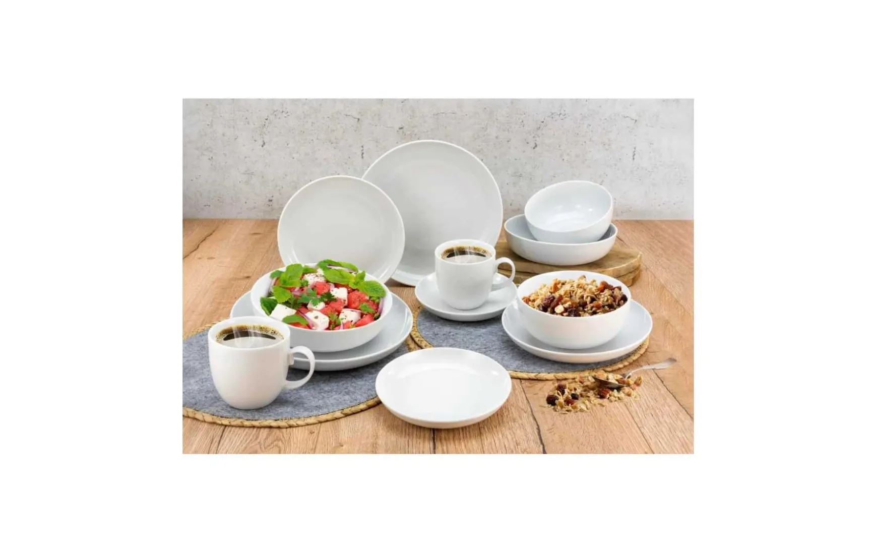 Dieses wunderschöne Kombiservice begeistert besonders durch seine elegante Optik. Es besteht aus hochwertigem Porzellan und ist Spülmaschinengeeignet. Das Kombiservice besteht aus 2 Speiseteller mit einem Durchmesser von 27 cm. 2 Suppenteller mit einem Durchmesser von 17,5 cm. 2 Schalen mit einer Füllmenge von 900 ml. 2 Dessertteller mit einem Durchmesser von 22 cm. 2 Kaffeeteller mit einer Füllmenge von 375 ml.
