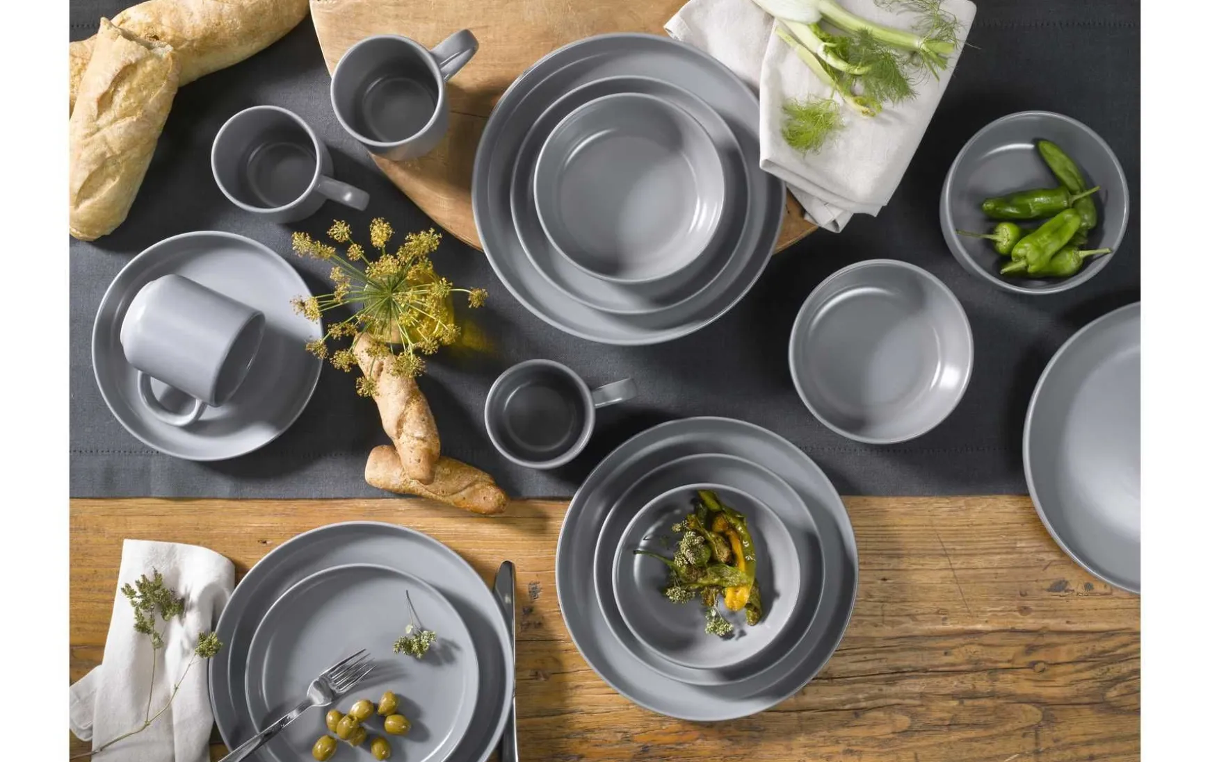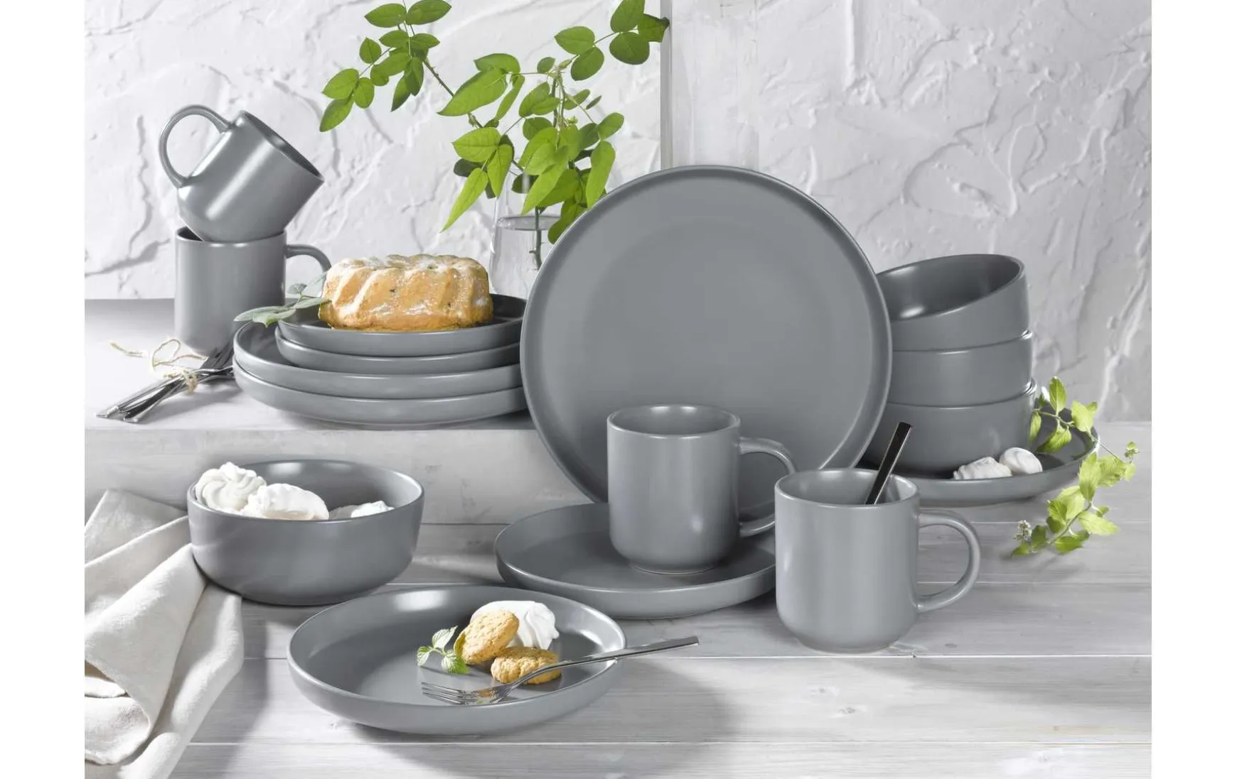 Diese alltagstaugliche Zusammenstellung aus je 4 Speise- und Desserttellern, Schalen und Kaffeebechern, in elegantem nordischem Design ist Geschirrspül- und mikrowellengeeignet.