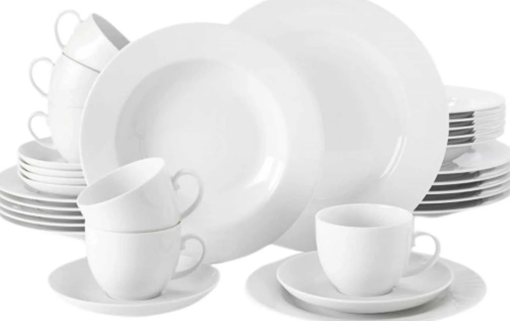 Dieses 30-teilige Kombiservice in Weiß gehört zu den unverzichtbaren Klassikern im Haushalt.