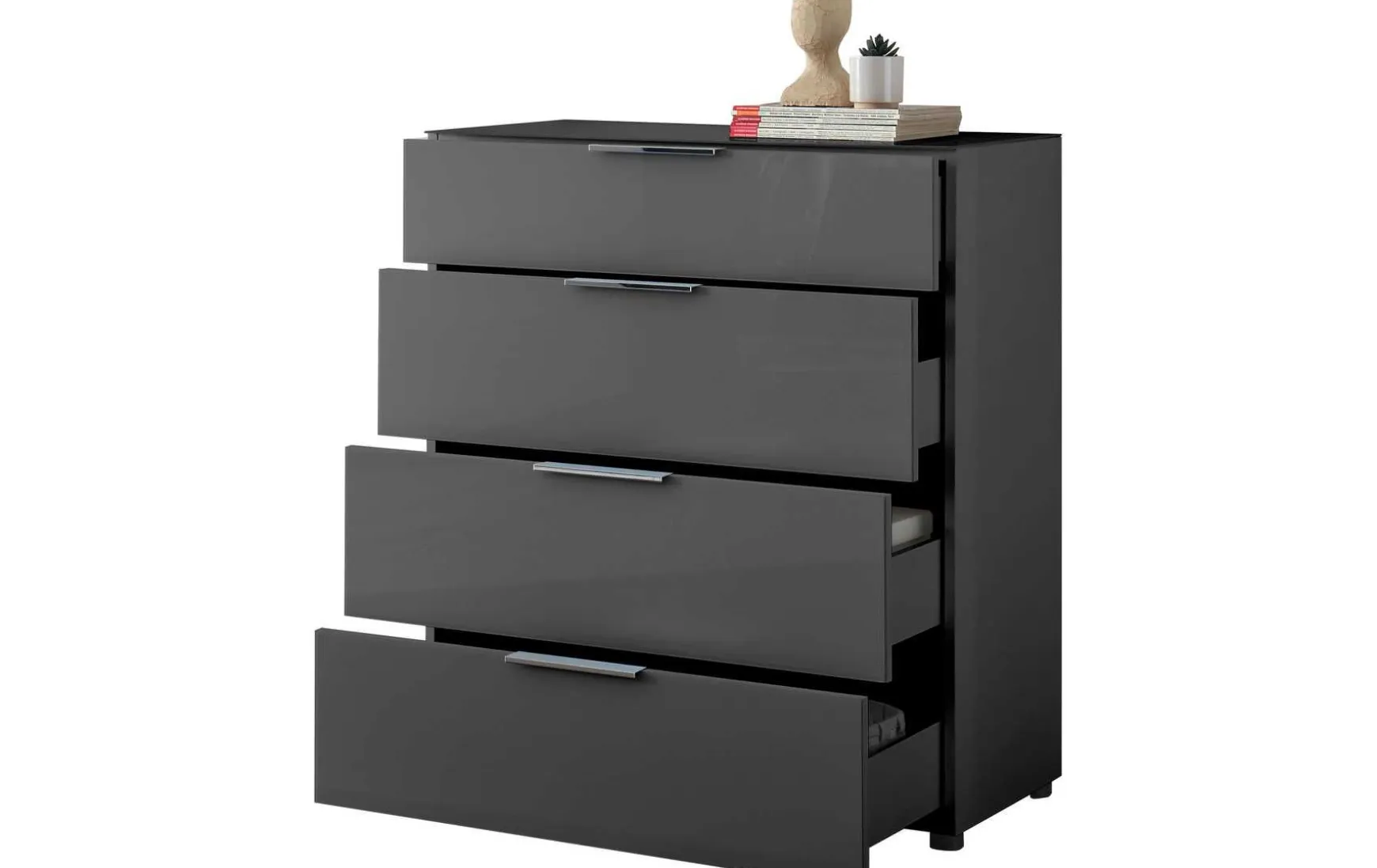 Diese elegante Kommode mit den Maßen ca. 90 × 99 × 40 cm ist mit 4 Schubkästen ausgestattet und damit die perfekte Wahl für Ordnungsliebhaber. Ihre Glasfronten verleihen ihr ein edles Erscheinungsbild, während die kompakte Form sie vielseitig einsetzbar macht – vom Schlafzimmer bis ins Esszimmer. Besonders bemerkenswert: Glasfronten in dieser Qualität zu einem solch günstigen Preis sind eine echte Seltenheit.
