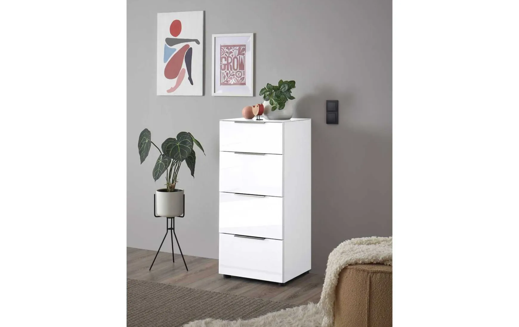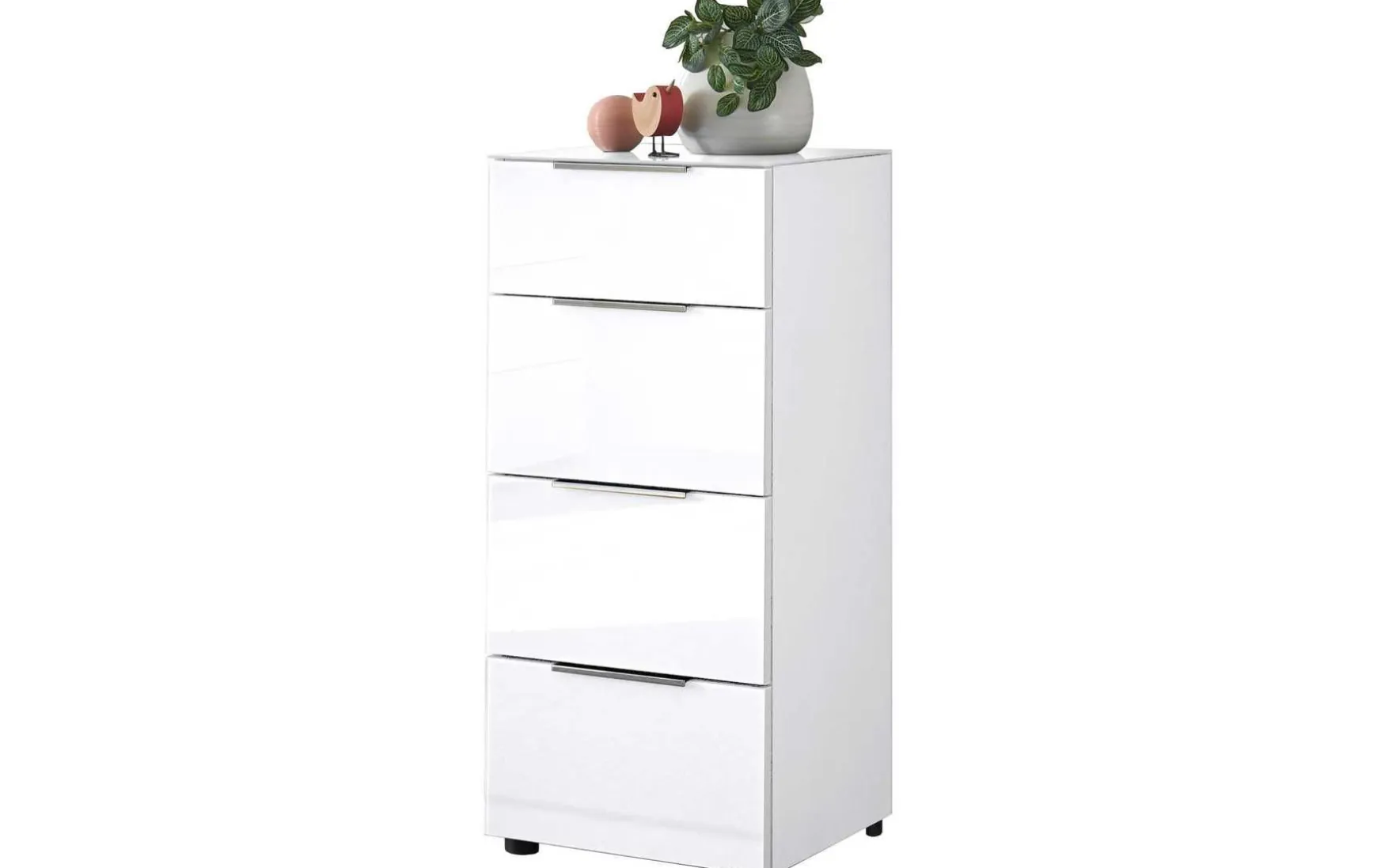 Mit kompakten ca. 45 × 99 × 40 cm passt diese Kommode fast überall hinein und bietet trotzdem beachtlichen Stauraum. Ausgestattet mit 4 Schubkästen, ist sie ein echtes Ordnungswunder. Ob im Flur, Schlafzimmer oder Wohnzimmer – sie fügt sich dank der Glasfronten harmonisch ein und überzeugt durch robuste Alltagstauglichkeit. Besonders der günstige Preis macht sie zu einer idealen Lösung für alle, die Wert auf modernes Design und Funktion legen.