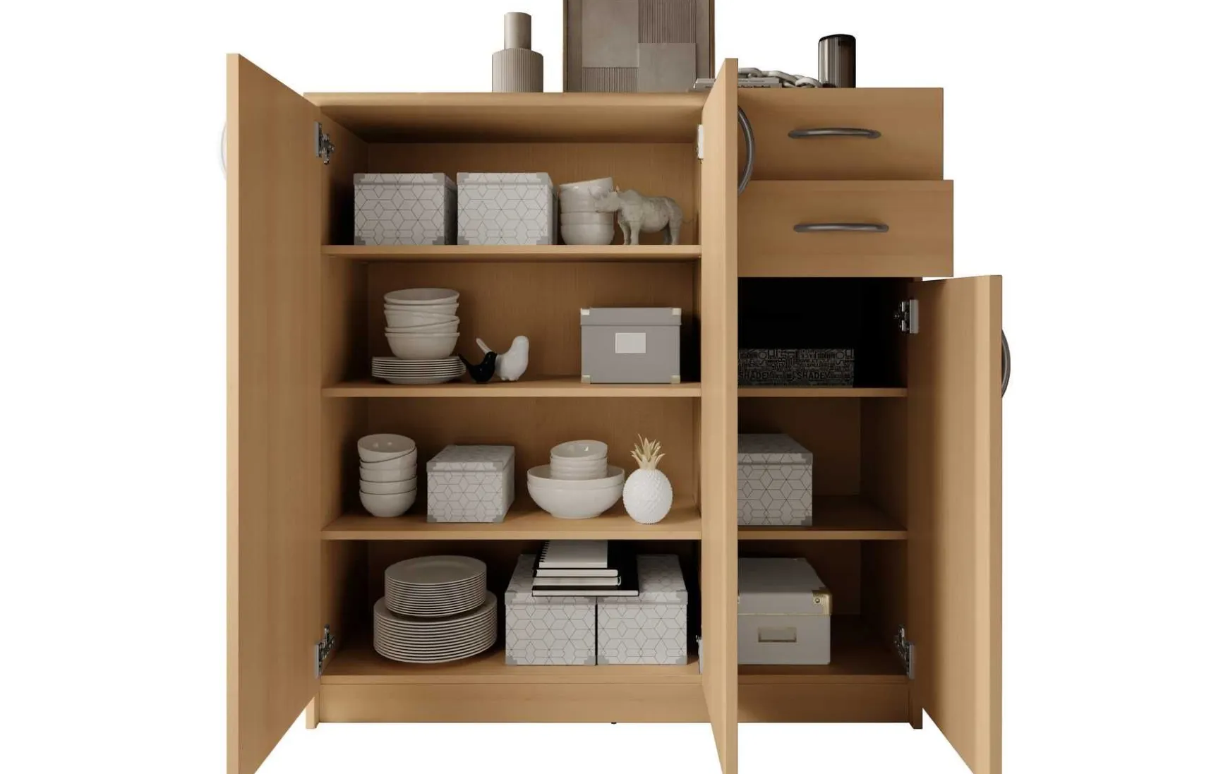 - Artikelinhalt: 3x Türen, 2x Schubläden, 5x Fächer, 5x Böden