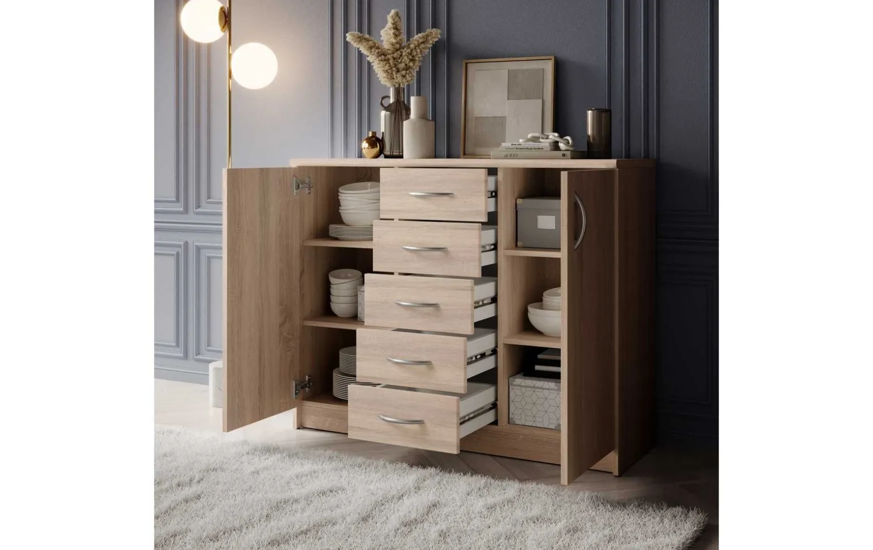 - 5 Schubladen, 2 Türen