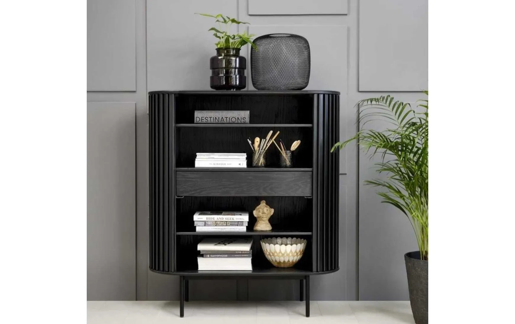 Dieser Kommodenschrank kombiniert die Robustheit von Eiche mit der Robustheit von Metall, was für ein langlebiges und stilvolles Erscheinungsbild sorgt. Die schwarze Farbe verleiht dem Schrank ein modernes und elegantes Aussehen, sodass er perfekt in verschiedene Wohnstile passt. Ob Sie zusätzlichen Stauraum oder einen Blickfang für Ihr Wohnzimmer suchen, dieser Schrank bietet alles. Mit seinen hochwertigen Materialien und seiner Handwerkskunst ist diese Kommode eine zuverlässige Wahl für jahrelangen Gebrauch.
