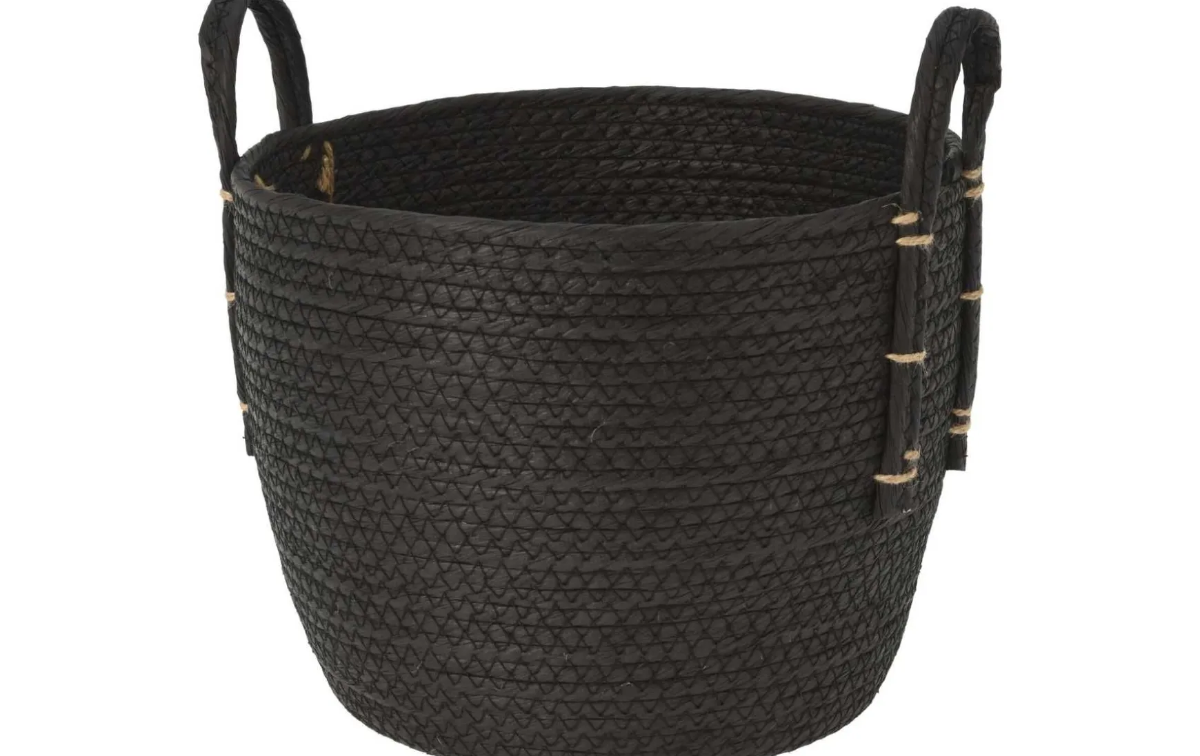 Dieser Korb aus schwarzem Papier hat zwei Griffe und ist eine styische Option, um diverse Objekte zu verstauen.