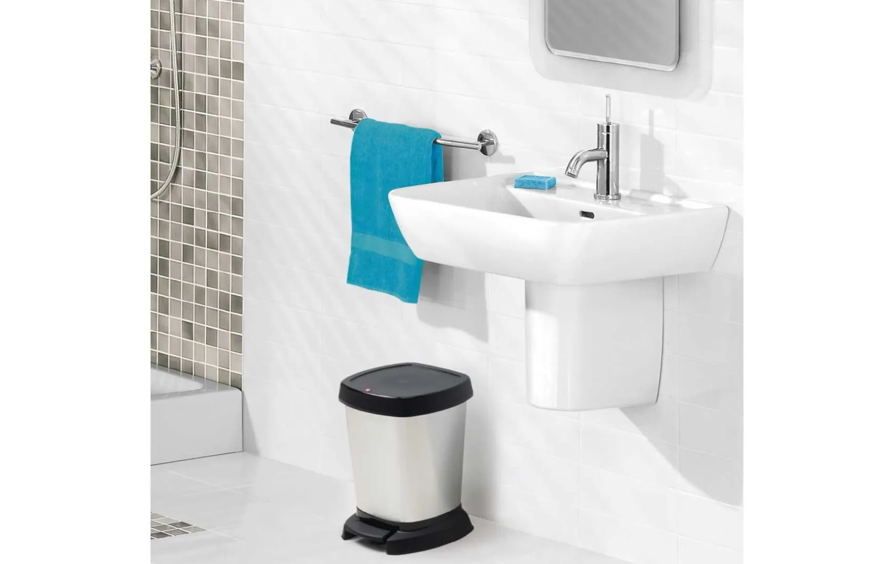 Mit den Maßen 23,4 x 21,9 x 29,5 cm (L x B x H) und einem Fassungsvolumen von 6 Litern eignet sich dieser Müllbehälter besonders für kleine bis mittelgroße Räume. Die Echtmetall-Ummantelung in edler Edelstahloptik zeigt sich unempfindlich gegenüber Rost und Beulen und eignet sich zum bedenkenlosen Einsatz im Nassbereich. Aus hochwertigem Kunststoff gefertigt, ist der Eimer zugleich leicht und robust. Die komfortable Bedienung wird durch die praktische Trittfunktion sichergestellt. Der dicht abschließende Deckel senkt sich geräuschlos und bietet zuverlässigen Schutz vor entweichenden Abfall-Gerüchen. Stabile Gummifüße garantieren auch auf Fliesenböden sicheren Stand ohne zu verrutschen