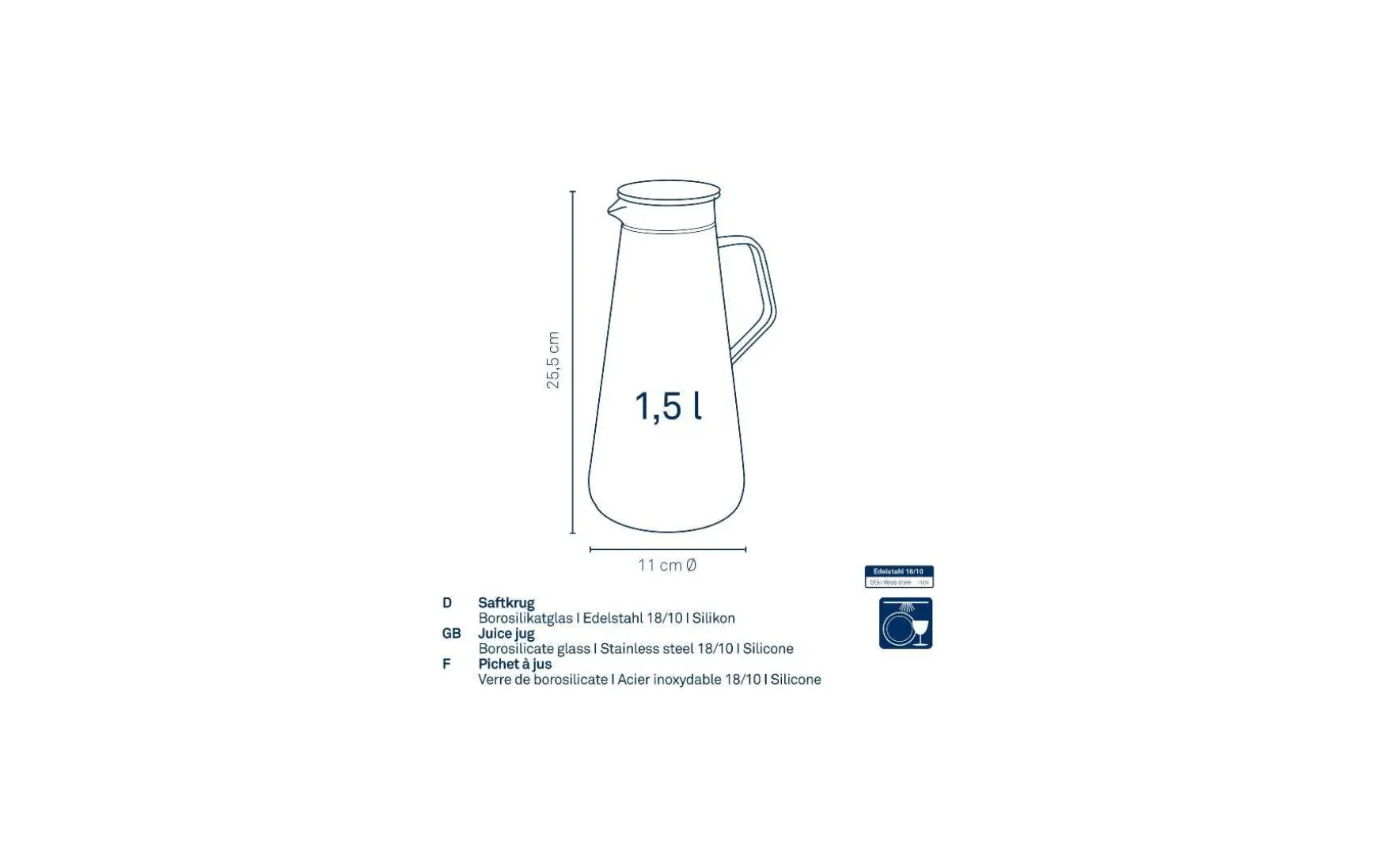 Frisch gepresst schmecken Säfte doch immernoch am besten. Und mit diesem Saftkrug gelingt das ansehnliche Präsentieren und Servieren auf dem gedeckten Tisch schnell und ohne großen Aufwand. Der formschöne Saft- und Wasserkrug aus Glas mit Griff besitzt eine Ausgießnase und einen Deckel aus Edelstahl.