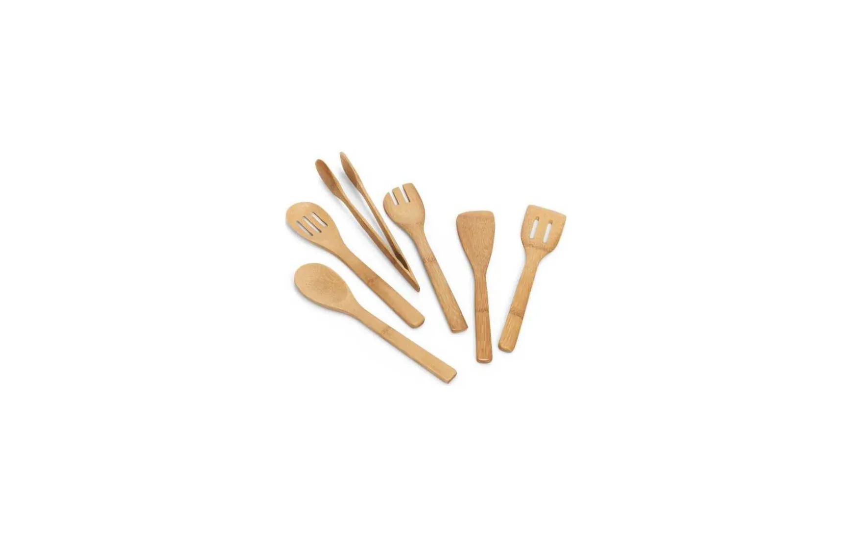 Mit diesem 7-teiligen Küchenutensilienhalter-Set haben Sie die wichtigsten Küchenutensilien stets geordnet und griffbereit zur Hand. Das Set besticht durch sein klassisches Design und ist ein echter Blickfang in der Küche. Der Halter sowie das Küchenbesteck sind aus dem hochwertigen und nachhaltigen Naturmaterial Bambus hergestellt und daher sehr umweltfreundlich. Einfache Wandmontage dank integriertem Loch im Besteckbehälter bei Bedarf möglich. Das Set besteht aus einem Köcher, einer Zange, 2 Pfannenwender und 3 Kochlöffel.