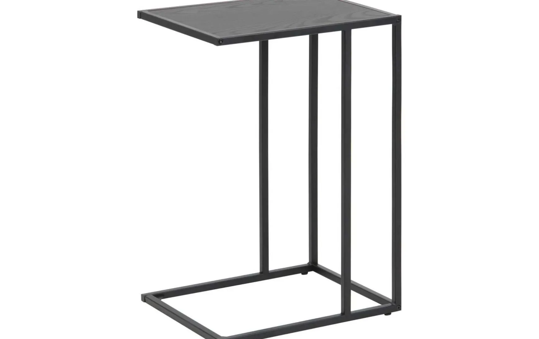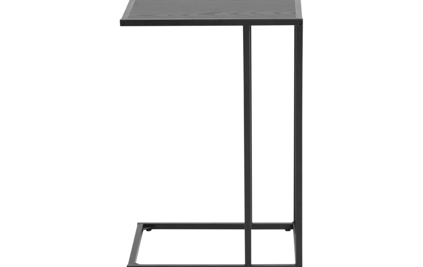 Dieser moderne Beistelltisch überzeugt durch sein minimalistisches Design und die elegante Farbgebung in Esche Schwarz. Die rechteckige Tischplatte mit pflegeleichter Melaminoberfläche bietet eine praktische Ablagefläche für Getränke, Bücher oder Dekoration. Das schwarz pulverbeschichtete Metallgestell mit rauer Oberfläche sorgt für Stabilität und unterstreicht den modernen, industriellen Look. Mit seinen kompakten Maßen eignet sich der Beistelltisch ideal als funktionale Ergänzung neben Sofa oder Sessel und lässt sich vielseitig einsetzen.