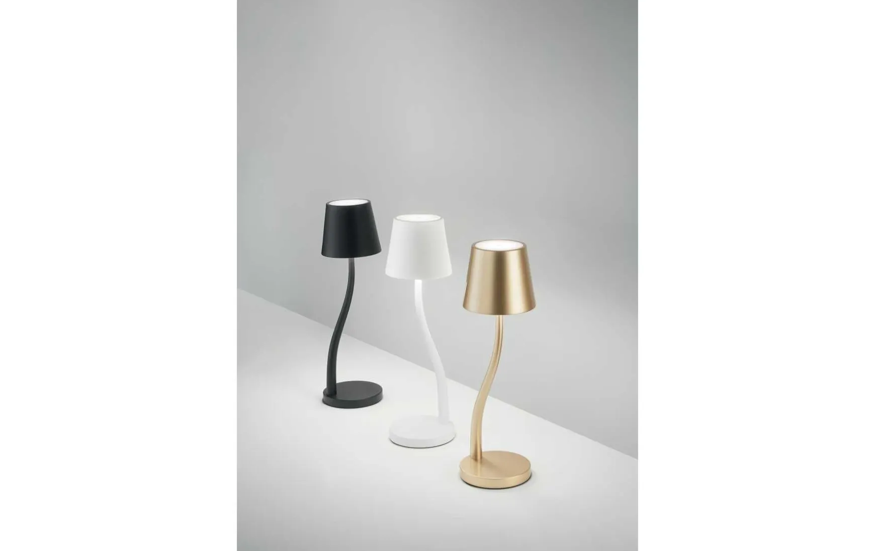 Solide AKKU-Tischleuchte in Schutzklasse IP54, stufenlos dimmbar, kippsicher durch niedrigen Schwerpunkt; Lichtabstahlung nach oben und unten, 320 Lumen
