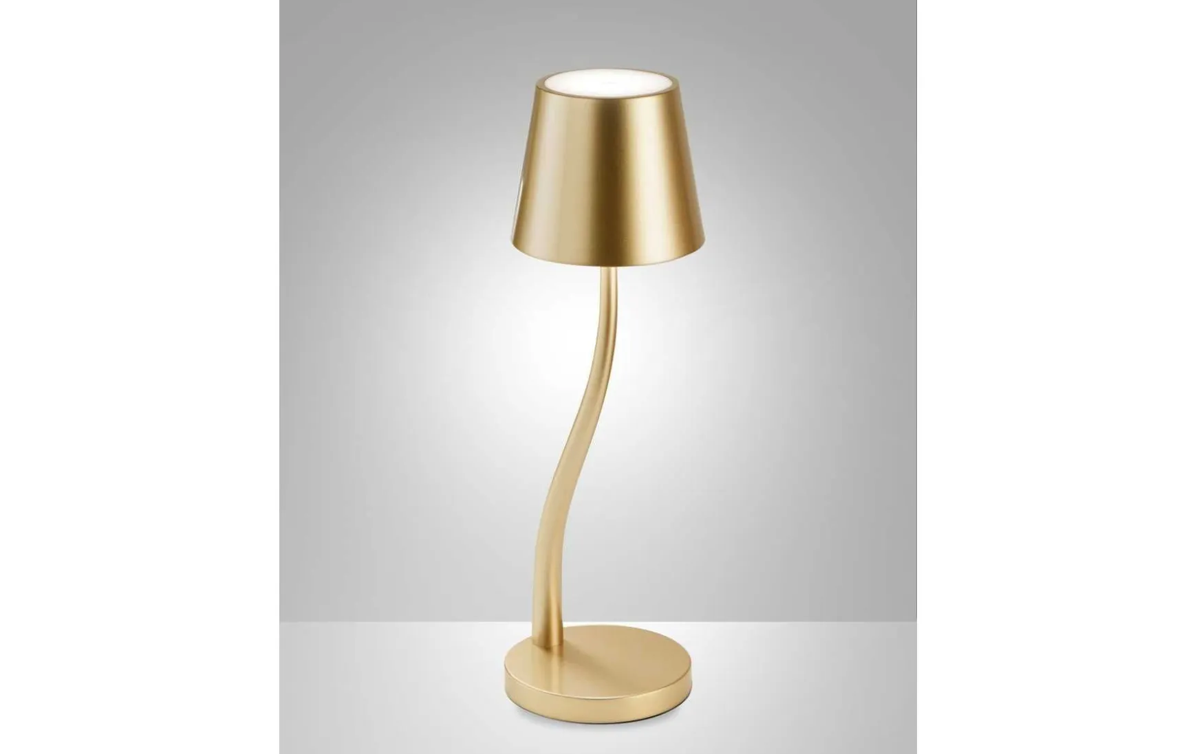 Solide AKKU-Tischleuchte in Schutzklasse IP54, stufenlos dimmbar, kippsicher durch niedrigen Schwerpunkt; Lichtabstahlung nach oben und unten, 320 Lumen