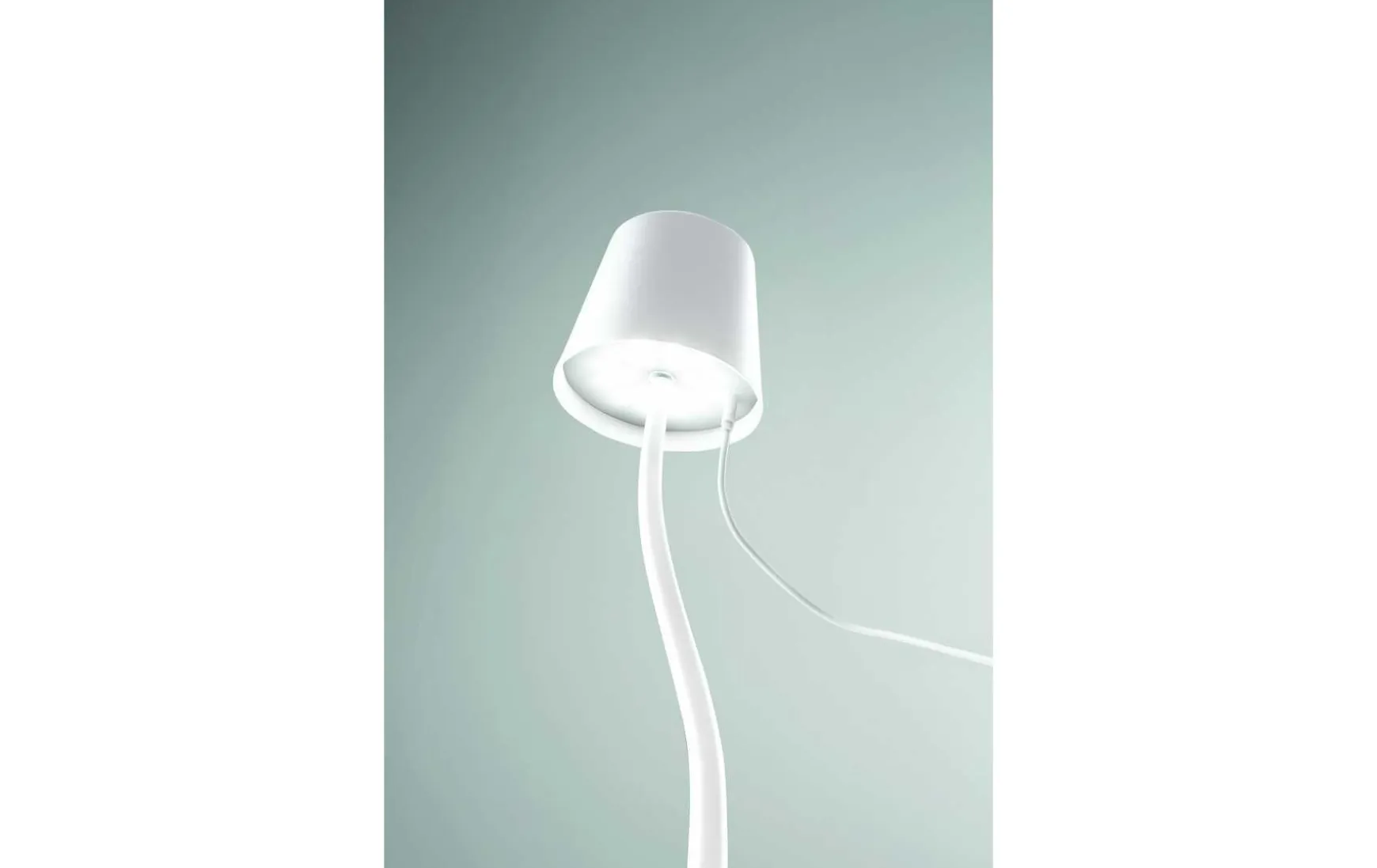 Solide AKKU-Tischleuchte in Schutzklasse IP54, stufenlos dimmbar, kippsicher durch niedrigen Schwerpunkt; Lichtabstahlung nach oben und unten, 320 Lumen