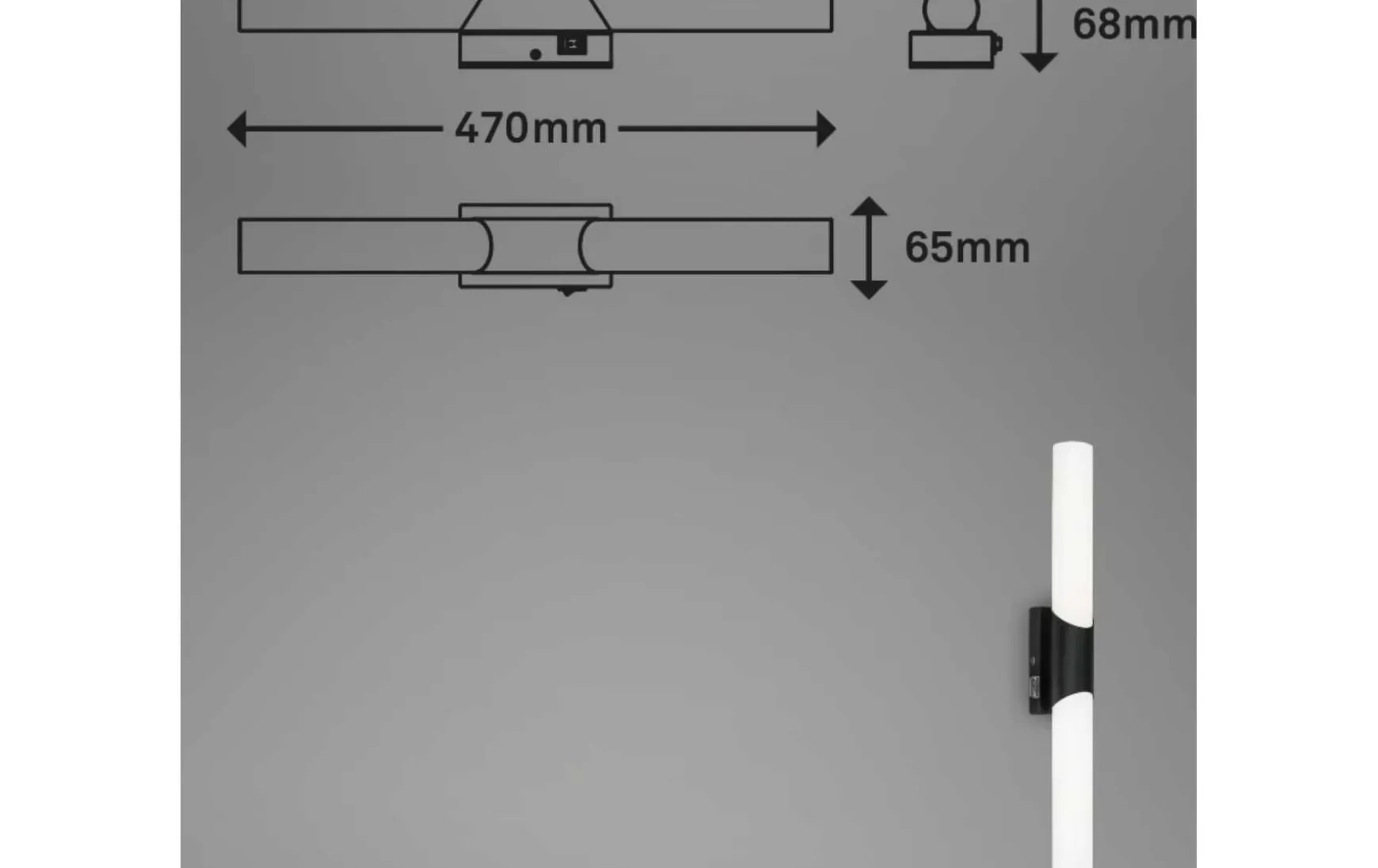 470x65x68mm (LxBxH)
