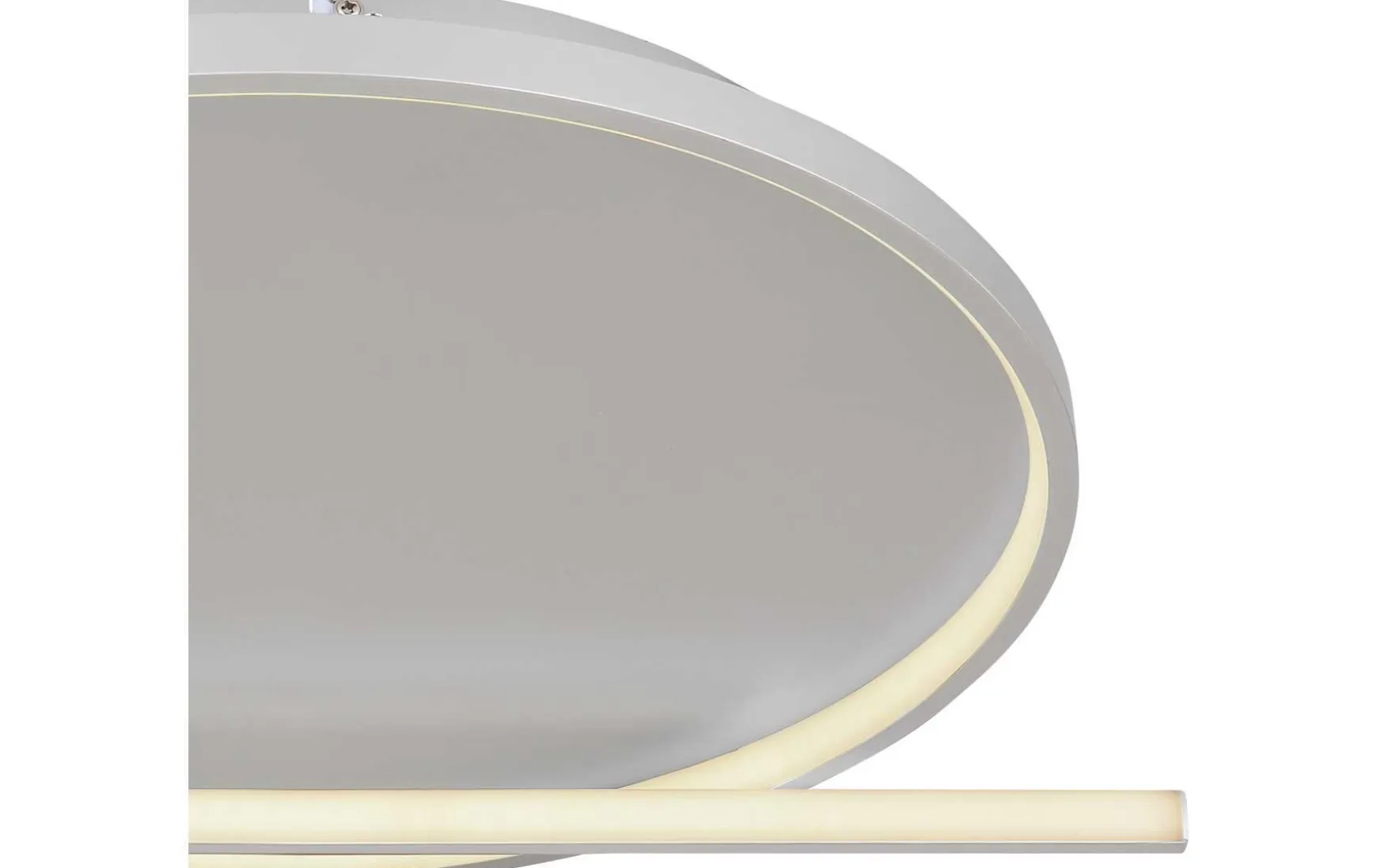 Diese tolle Deckenleuchte begeistert durch schönes Design und Funktionen. An einer grauen runden Deckenbefestigung befindet sich ein LED-Paneel (Ø 48 cm) in Form eines Ringes mit einem zusätzlichen länglichen Paneel welche jeweils ein 2700 Kelvin warmweißes bis hin zu 6000 Kelvin kaltweißes Licht scheinen und zudem auch gedimmt werden können. Mittels der inkludierten Fernbedienung können Sie die Nachtlicht- und Memoryfunktion nutzen.