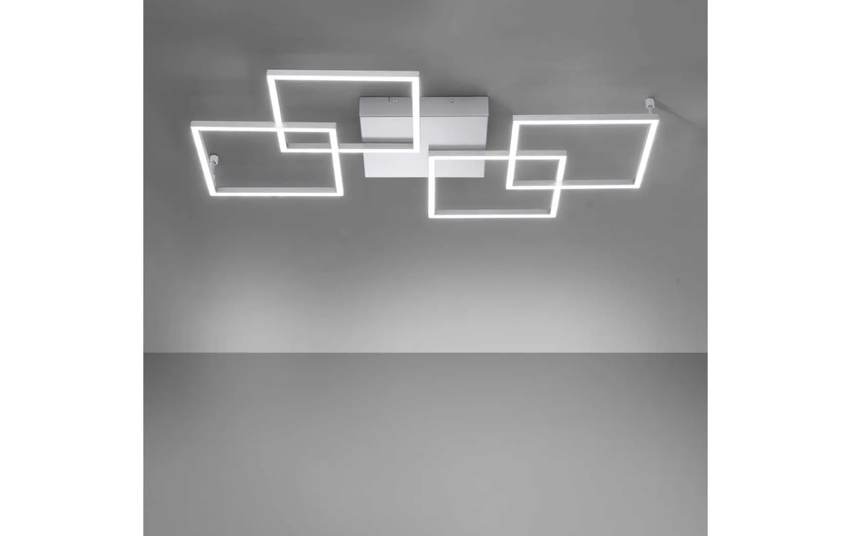 Die aus Stahl gefertigte Deckenleuchte wird inklusive vier festverbauten 7,7 Watt LED-Leuchtmitteln geliefert.