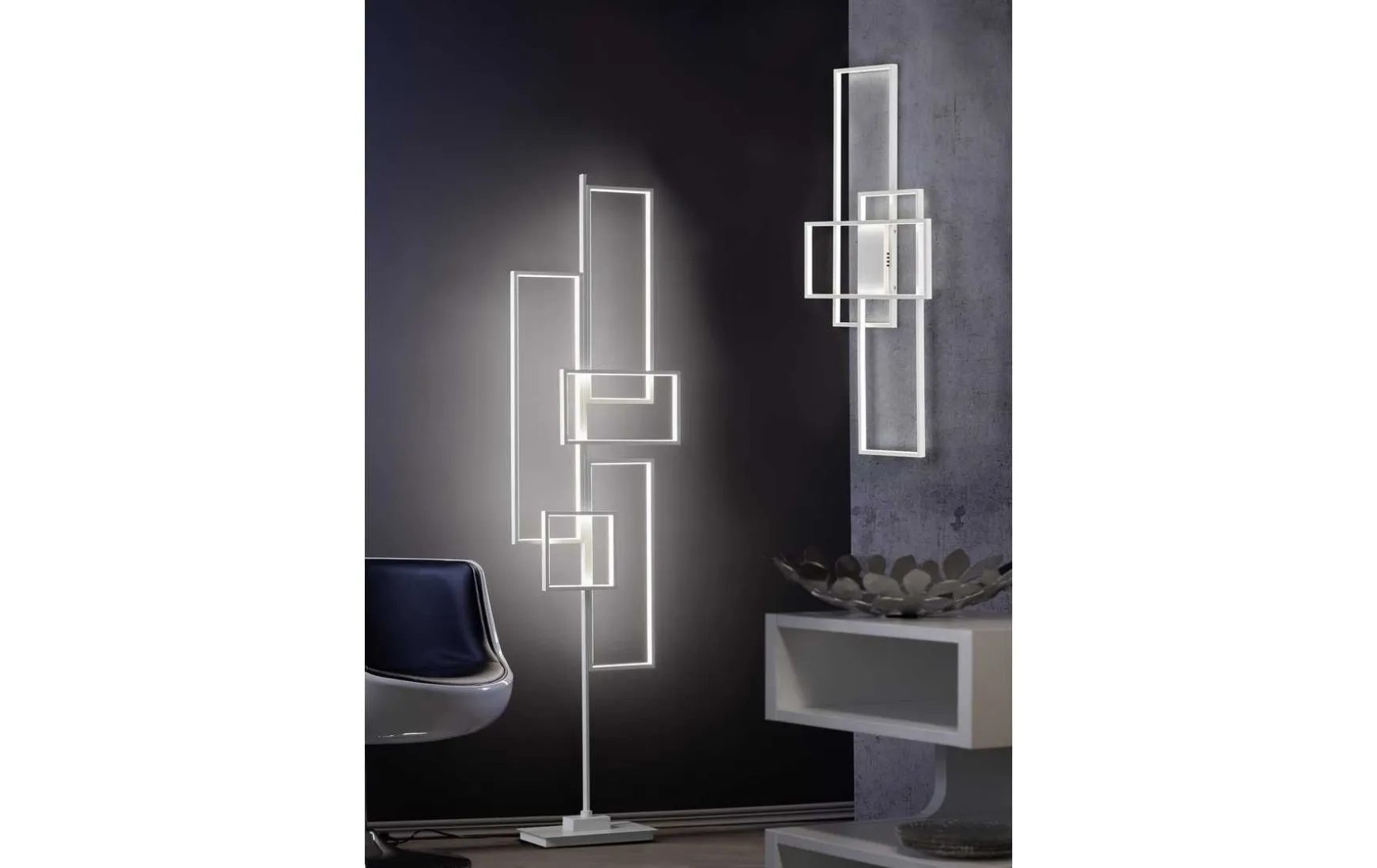 Die Zusammensetzung aus drei einzelnen, filigranen Rechtecken ergibt eine moderne Leuchte für den Wohnraum oder Eingangsbereich.