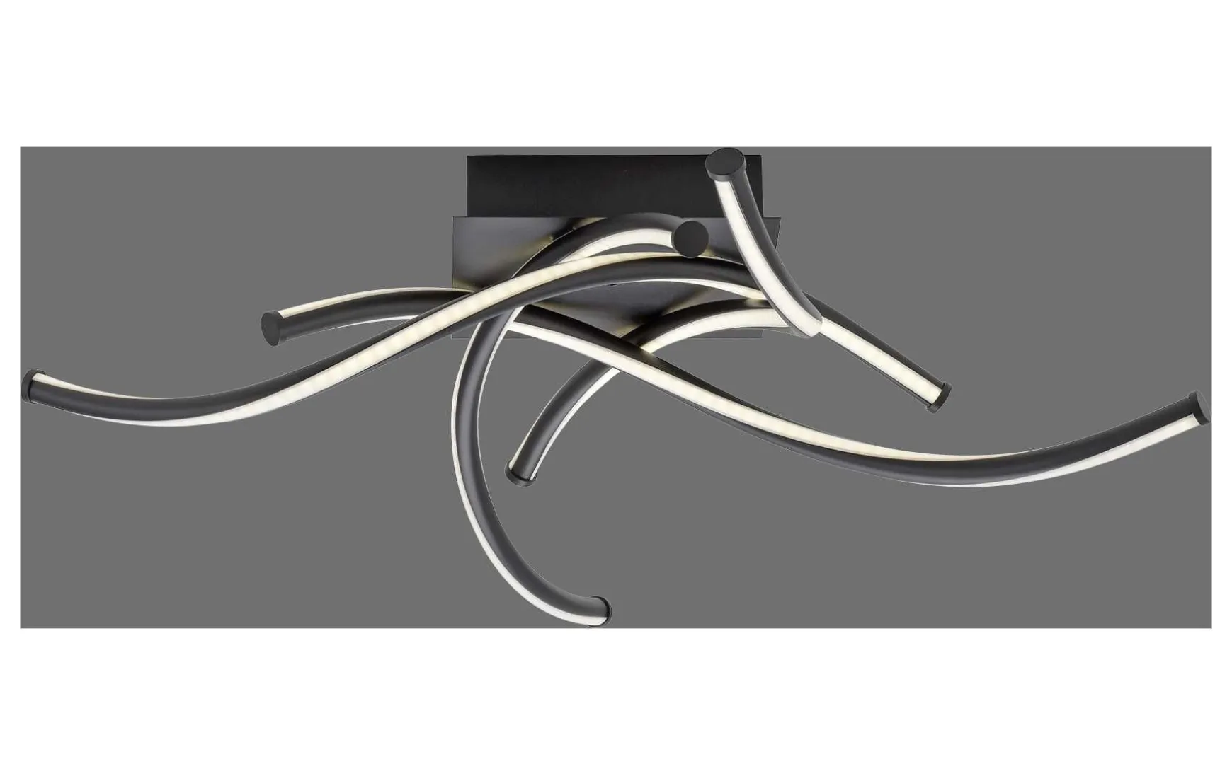 Diese Leuchte verwendet effiziente LED- Lichtquellen. Die Lampe ist in einem modernen, anthrazitfarbenen Farbton gehalten. Es fasziniert durch sein modernes und elegantes Design. Die besondere geschwungene Form macht die Lampe zu einem Hingucker. Die Lampe ist mit vier festen LED-Armen ausgestattet. Der Gesamtstromverbrauch beträgt 35 Watt. Seine Abmessungen betragen bis zu 75 x 75 cm . Dies ermöglicht eine punktgenaue Beleuchtung des gesamten Raumes.