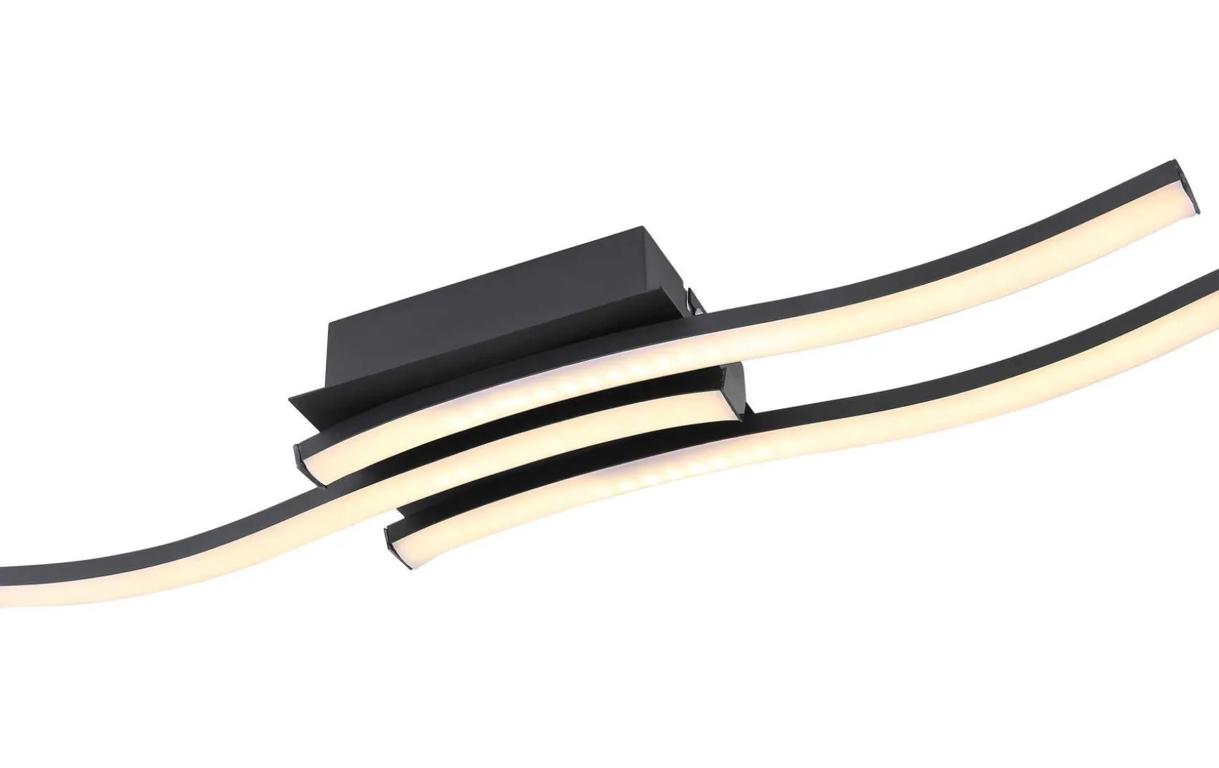 Diese moderne Deckenleuchte besticht durch Ihr schlichtes Design aus schwarz-mattem Metall und opalenem Kunststoff.