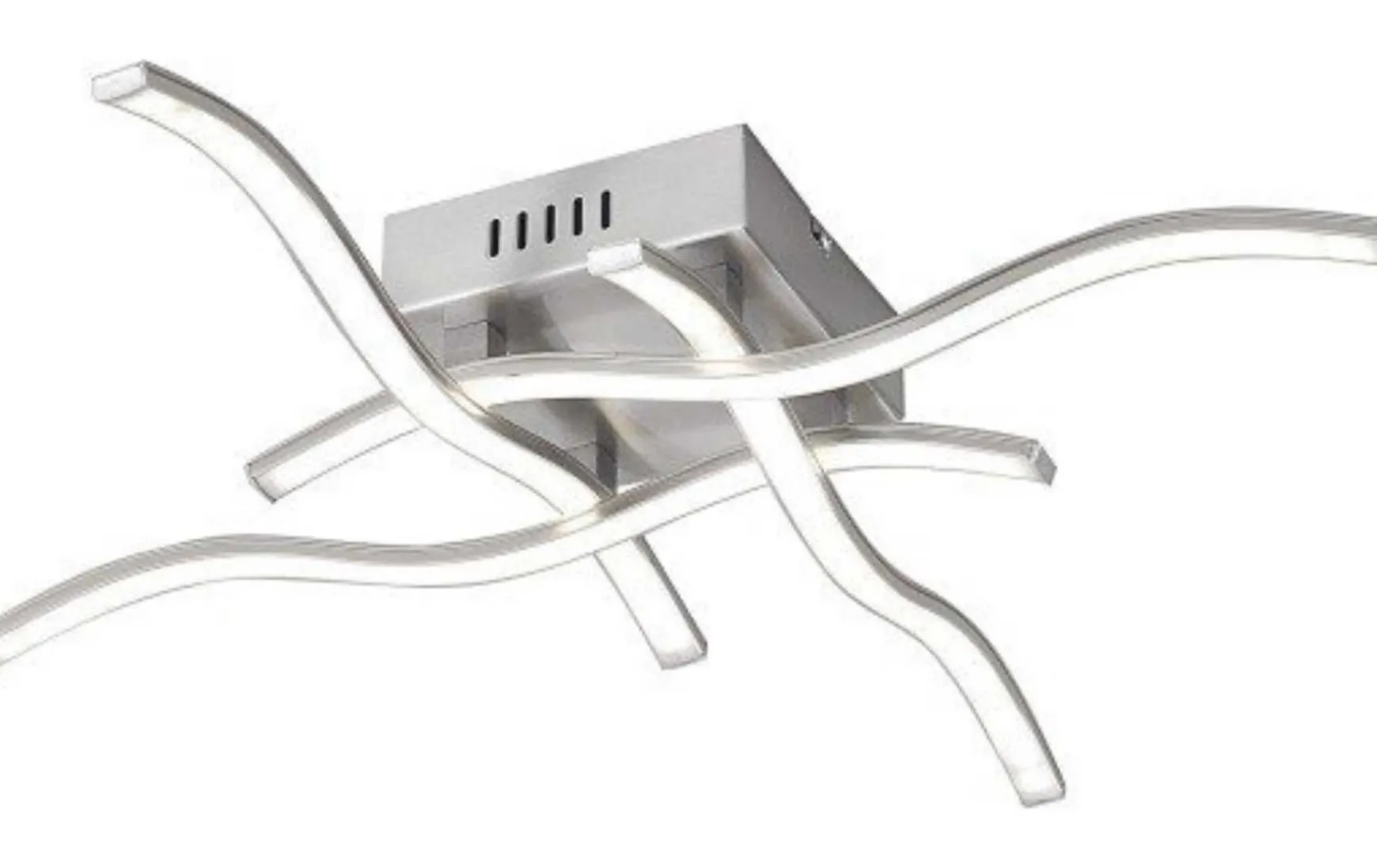 moderne LED Deckenleuchte stahl, Acryl weiß, 4 geschwungene Leuchtstäbe, inkl. 4x LED Board 4,8 Watt / 480 Lumen, 3000 Kelvin, Länge 55cm, Breite 55cm, Höhe 8,5cm