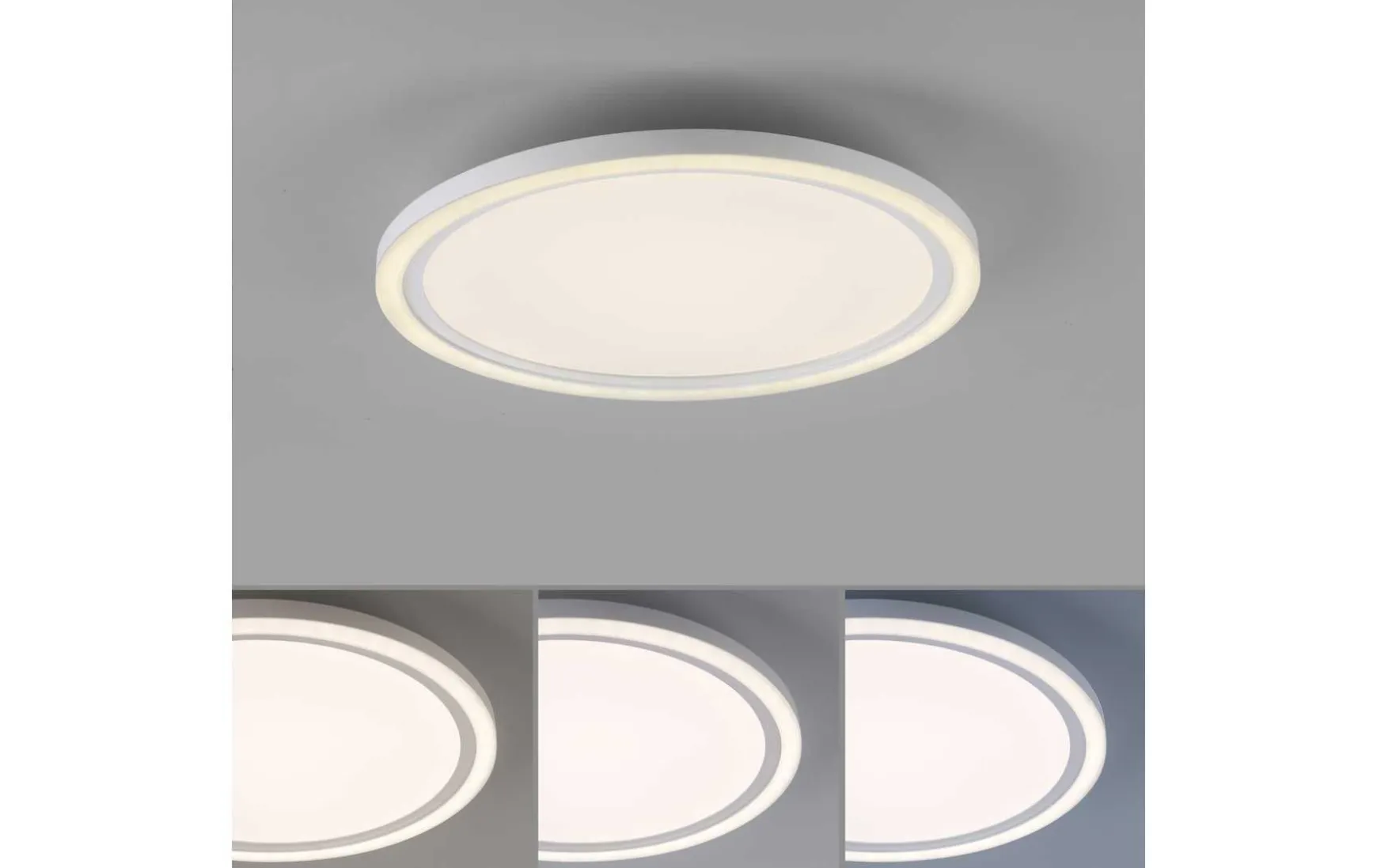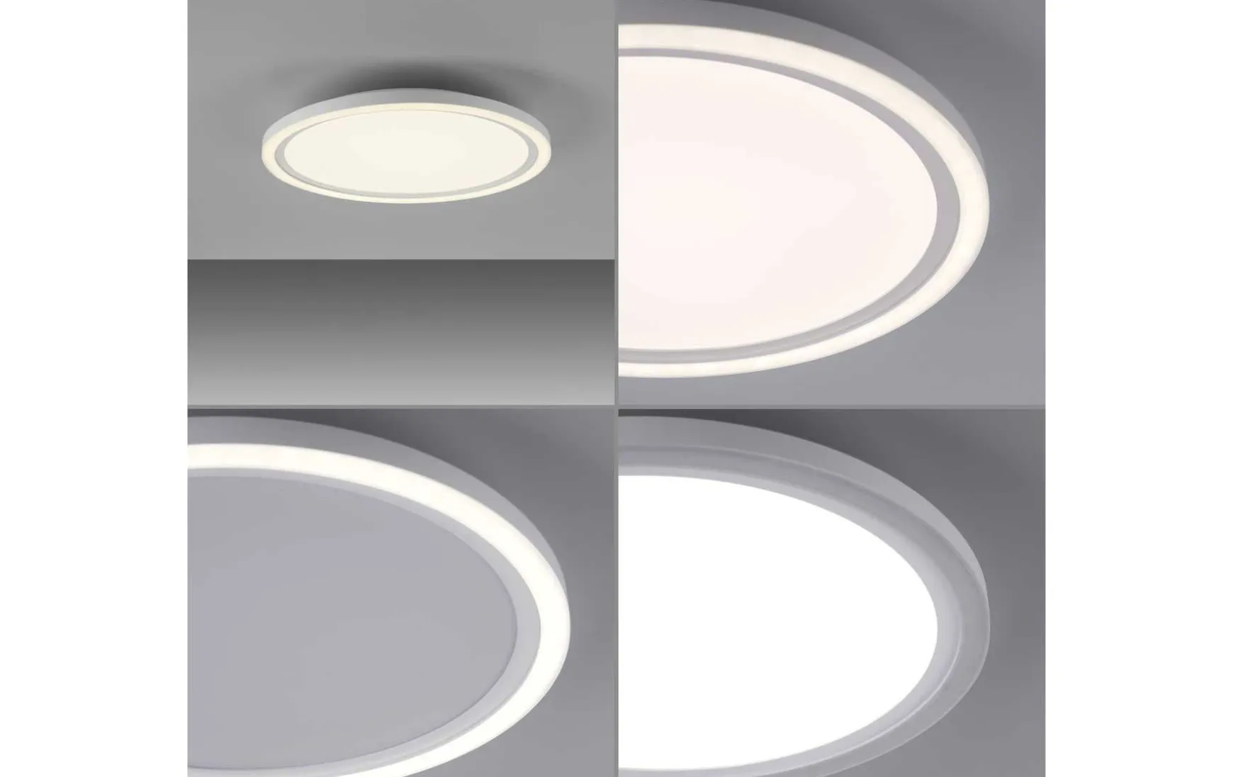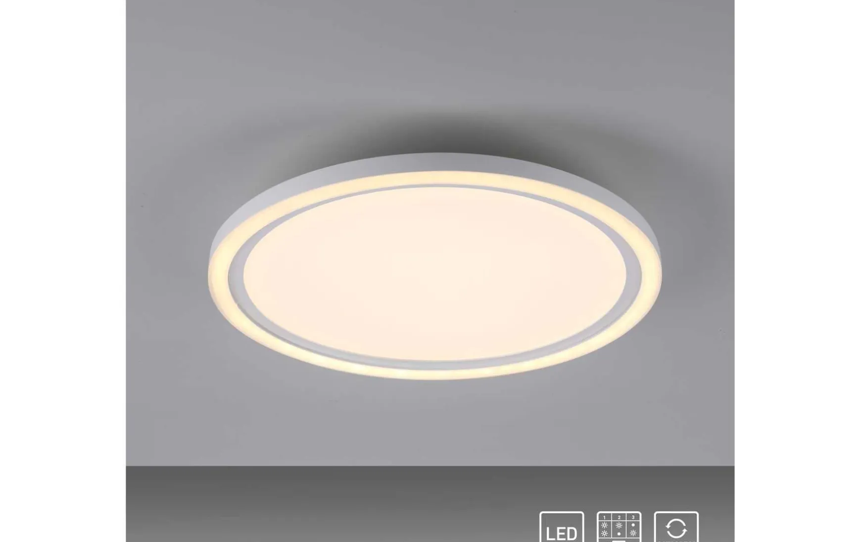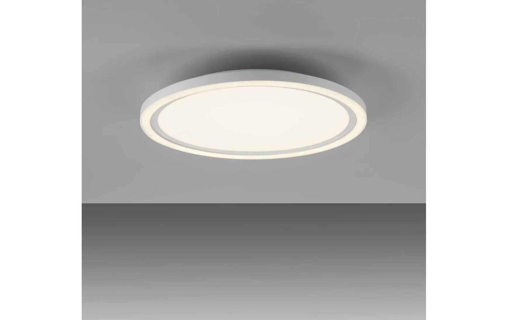 Das runde LED Panel überzeugt durch ein schlichtes, zeitloses Design. Die energiesparende LED Deckenleuchte wird mit zwei warmweißen LED Leuchtmitteln geliefert. Die weiße Leuchte ist mit einem Serienschalter ausgestattet, der es ermöglicht per Lichtschalter die Lichtquellen separat schalten. Schalten Sie das Paneel zum ersten Mal ein und aus, dann erstrahlt die komplette Deckenbeleuchtung. Beim zweiten Mal ein- und ausschalten des Deckenpaneels, leuchtet nur der äußere Rand der Leuchte und beim dritten Mal ein- und ausschalten, erstrahlt lediglich der innere Bereich der Deckenlampe. Durch die Memoryfunktion bleiben die zuletzt gewählten Einstellungen solange erhalten bis man eine Veränderung vornimmt. Dank der weißen Kunststoffoberfläche gibt das LED Paneel ein softes und angenehmes Licht wieder. Durch die verwendete LED Technik ist die Deckenleuchte nicht nur energiesparend – sie überzeugt auch durch die hohe Lebensdauer als auch die geringe Wärmeentwicklung.