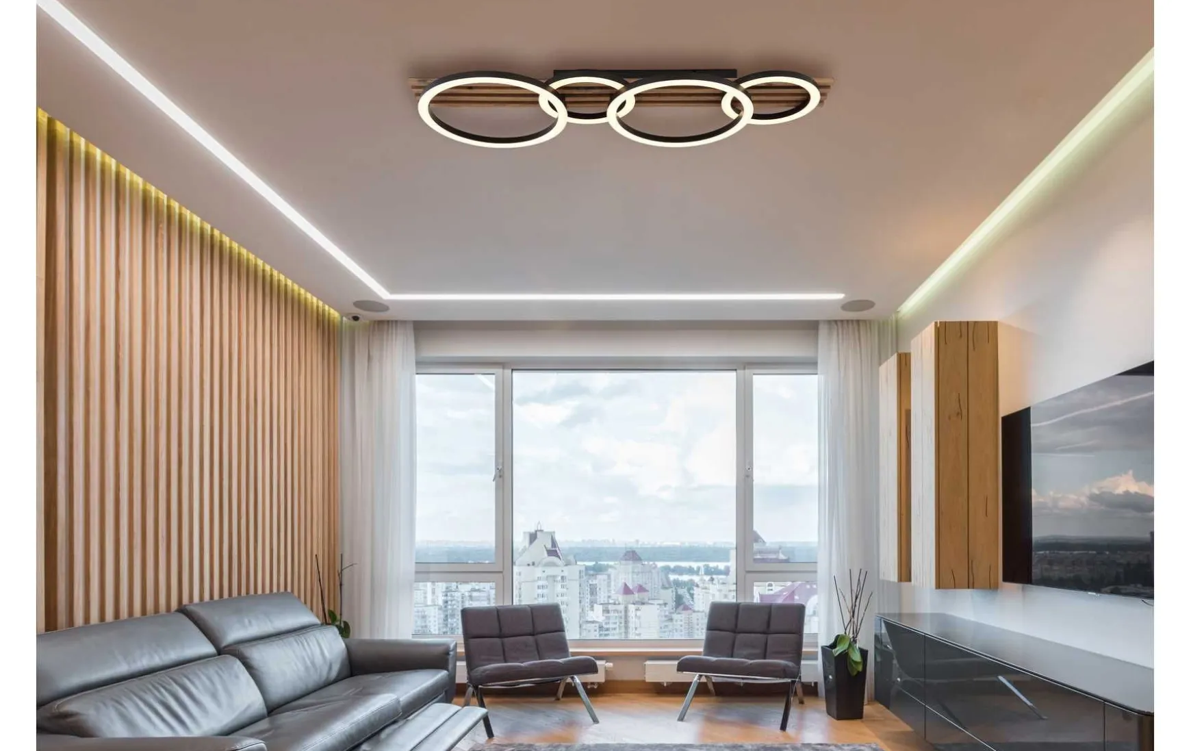 Die Deckenleuchte bietet einen Lumen-Output von 1500 Lumen und eine Farbtemperatur von 3000 K, die für eine warme, gemütliche Beleuchtung sorgt.