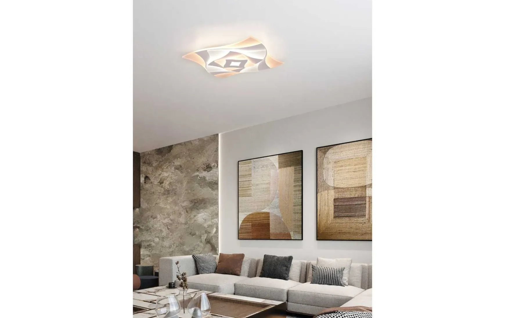 Diese Deckenleuchte wirkt beruhigend und zieht uns mit den verspielten geometrischen Formen sowie dem 3D-Effekt in ihren Bann.