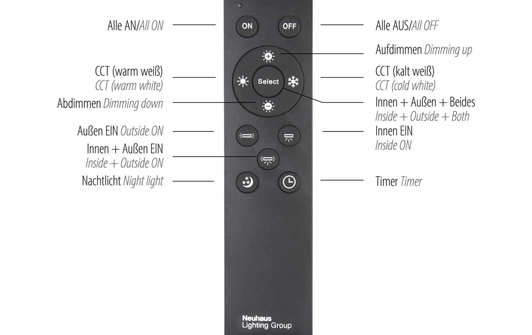 Ebenso kann man die Lichtstärke ganz nach Belieben regulieren. Die Steuerung der Funktionen erfolgt per mitgelieferter Funkfernbedienung.