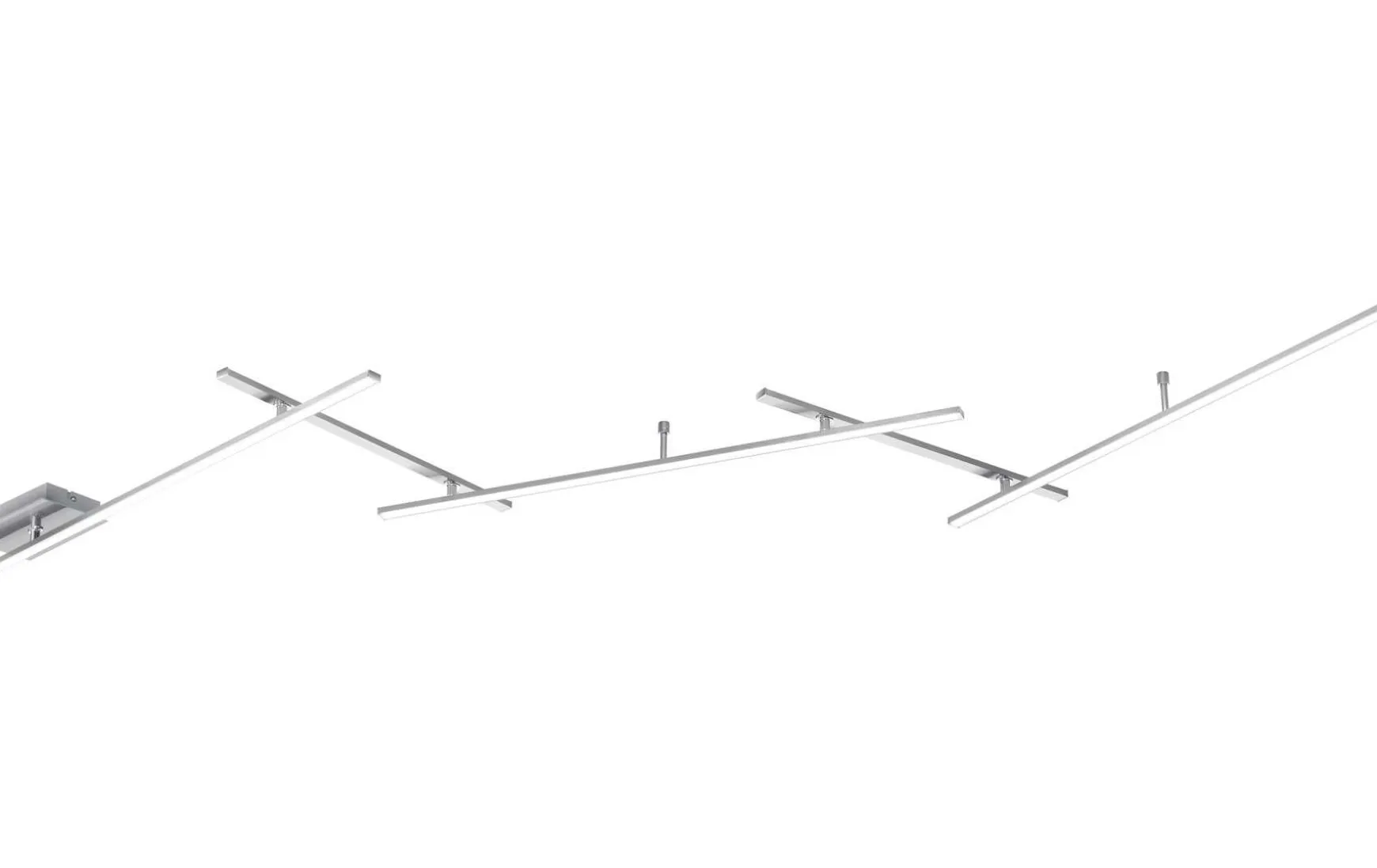 Die außergewöhnliche Leuchte verfügt über drei längerer Elemente bei denen sich die Lichtaustrittsfläche nach unten gerichtet befindet und zwei kürzere Elemente bei denen die Lichtaustrittsfläche nach oben gerichtet ist.