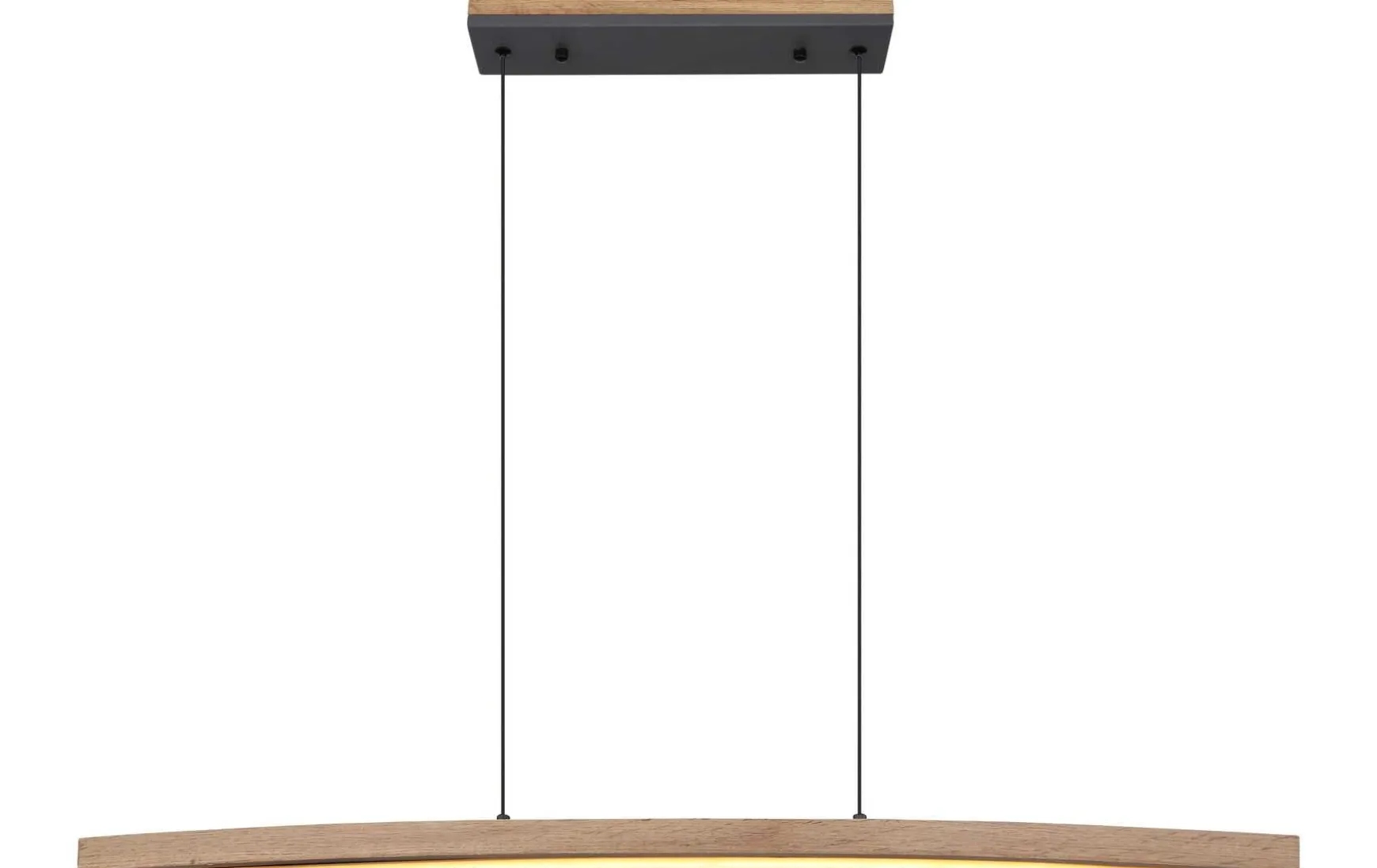 Diese formschöne Hängeleuchte begeister Klein und Groß. Aus einer rechteckigen Deckenbefestigung in toller Holzoptik verlaufen zwei 1,2 m lange Kabel zu einer 1 m langen geschwungenen MDF Stange in Holzoptik mit integriertem LED Panel. Dieses leistet ein 3000 Kelvin warmweißes Licht und sorgt somit für eine angenehme Atmosphäre. Mittels Touch ON/OFF kann die Leuchte bedient und ebenfalls mittels Touch auch gedimmt werden.