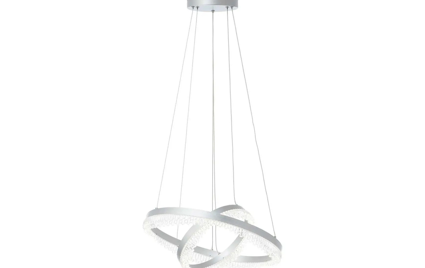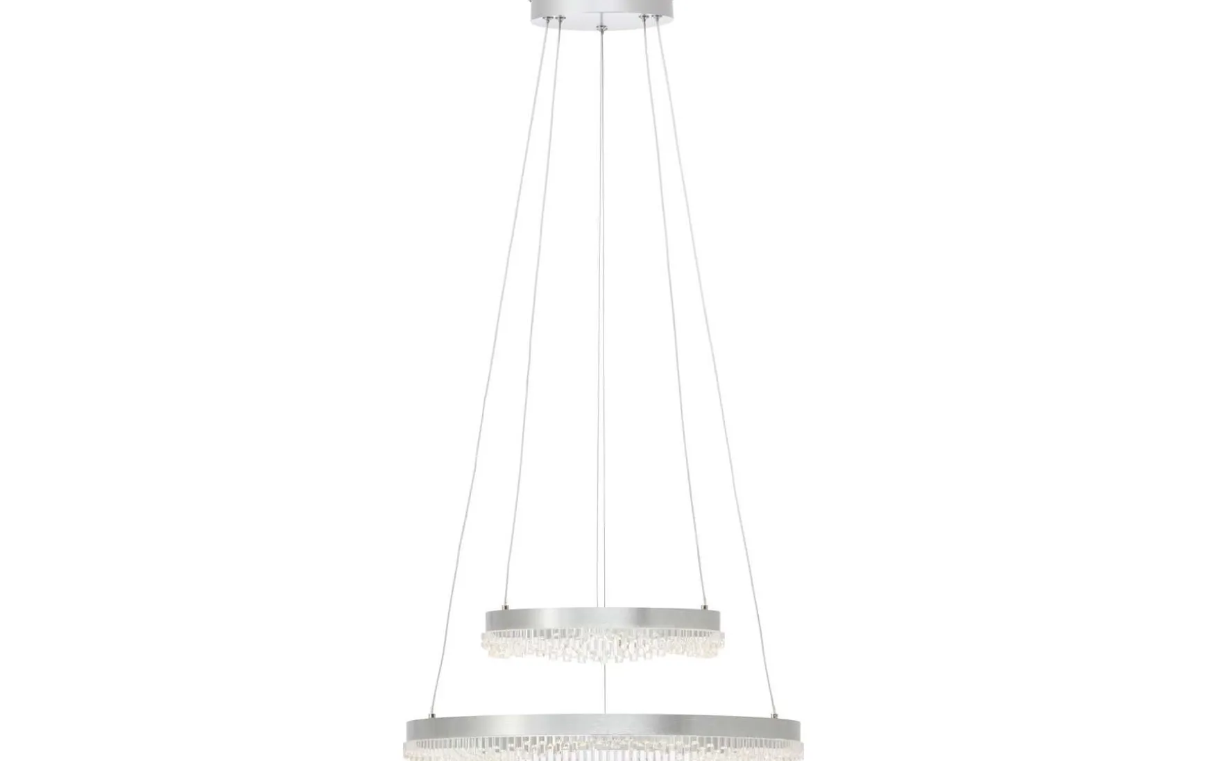 Die beiden übereinander angeordneten Ringe aus silberfarbenem Metall und klarem Acryl setzen in jedem Raum glanzvolle Akzente und schaffen eine luxuriöse Atmosphäre.