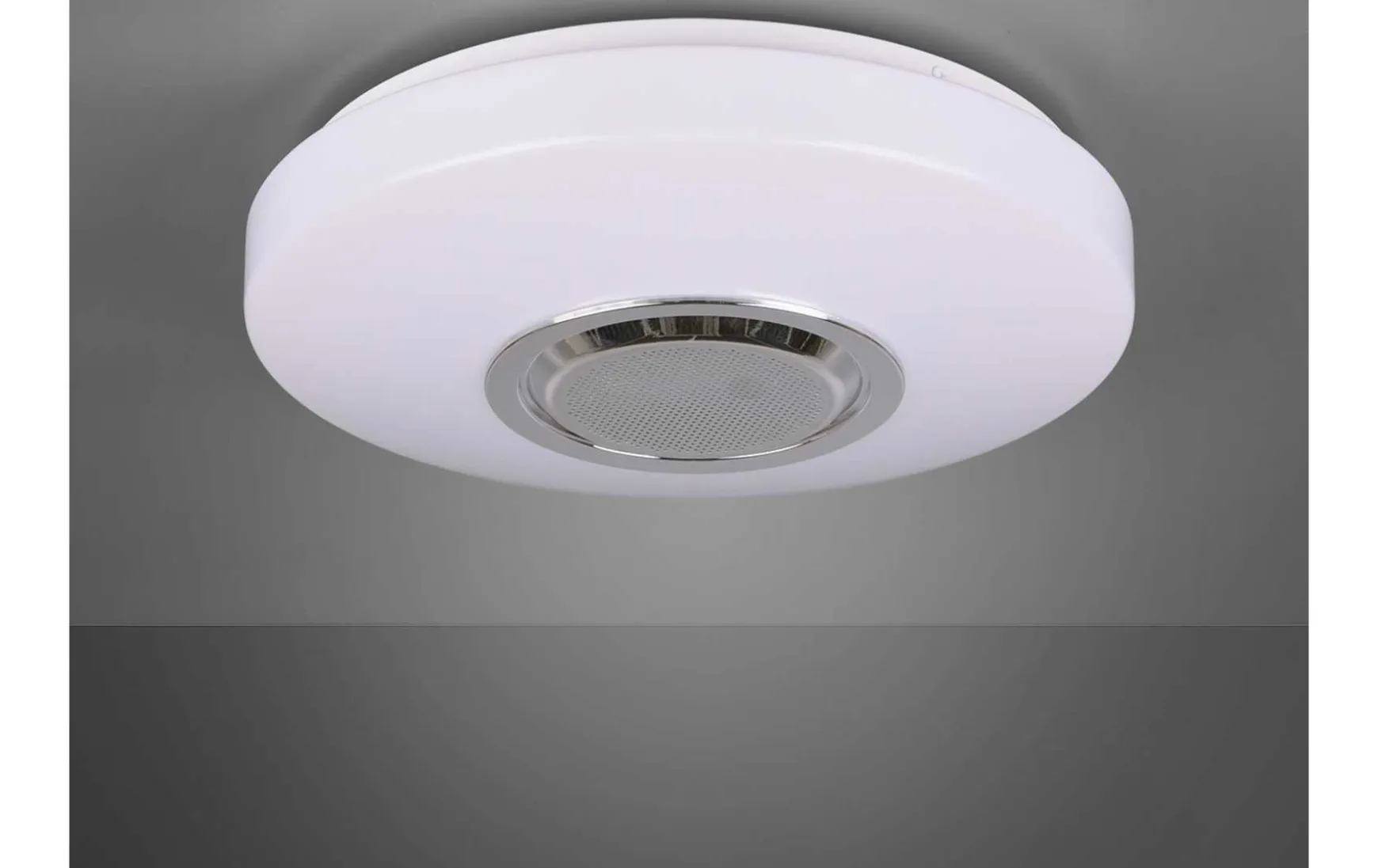 Diese Leuchte überzeugt nicht nur durch ihre Eleganz und das ansprechende Design, sondern viel mehr durch die herausragende Technik, welche sich hinter dem schlichten Design verbirgt. Neben den angenehmen und entspannenden RGBW Lichtspielen, welche Sie über die beiliegende Fernbedienung bequem und einfach steuern können, ist es ebenso möglich, über die in der Lampe integrierten Lautsprecher Ihre Musik z.B. vom Handy aus über die Deckenleuchte abzuspielen. Das 10 Watt leistungsstarke Leuchtmittel strahlt rund 1100 Lumen aus und es besteht die Möglichkeit durch Betätigen der Fernbedienung, die Leuchte zu dimmen. Durch diese Steuerung spiegelt diese hochwertige Deckenleuchte alle Lichtfarben eines Tagesablaufs wieder. So unterstreichen Sie nicht nur durch die Lichtfarbe der Leuchte die Atmosphäre in Ihrem Wohnraum, sondern können das Ganze zusätzlich mit der passenden Musik hinterlegen! Dank Ihrer schlichten, runden Ausführung in Kunststoff weiß, lässt sich die Leuchte nahtlos in alle Einrichtungsstile integrieren. Die festverbauten SMD LEDs verfügen über eine moderne LED Technologie, die sich durch eine hohe Lichtqualität und Energieeffizienz auszeichnet. Im Vergleich zu herkömmlichen Halogen Leuchtmitteln lassen sich bis zu 80% der Energiekosten sparen. Zusätzlich haben LED Lichtquellen eine lange Lebensdauer, produzieren weniger Wärme und schonen die Umwelt.