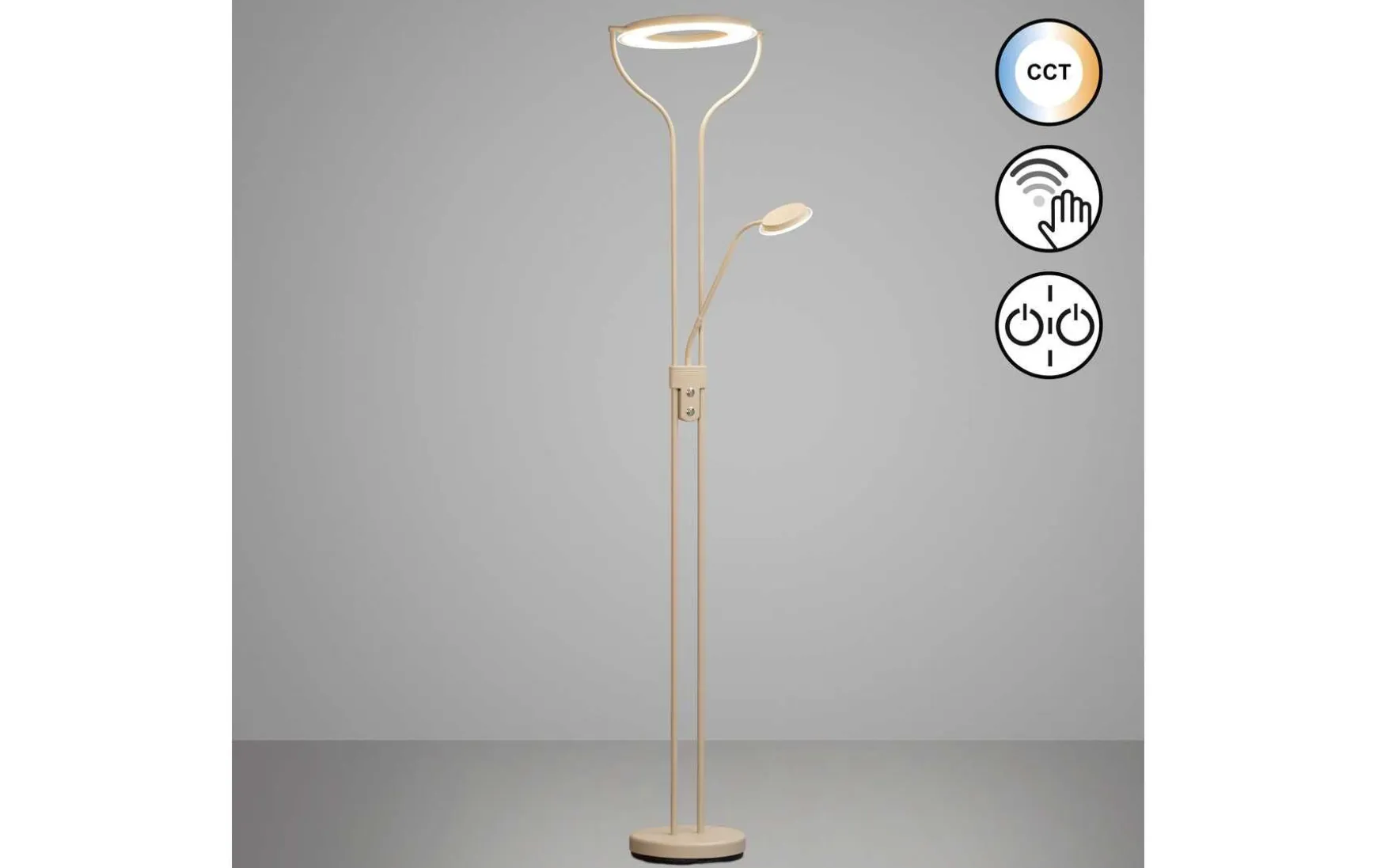 Der Deckenfluter und der Arm lassen sich getrennt schalten.